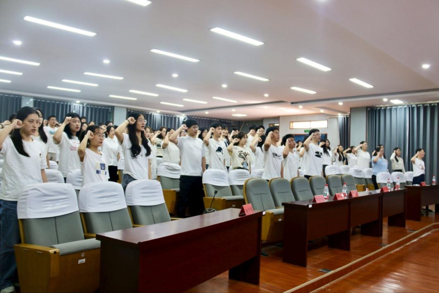 随后,在学生党员代表崔家霖的领誓下,全体毕业生党员面向党旗庄严列队,以铿锵有力的誓言重温入党承诺,进一步强化党员的责任感和使命感。