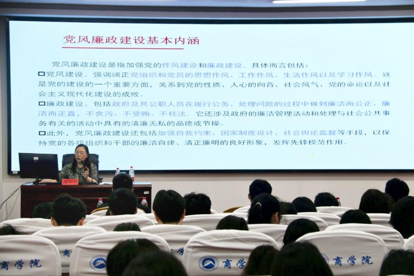 会上,马克思主义学院原党委书记、二级教授廖和平受邀为全体毕业生党员讲授廉洁教育专题党课。廖教授以《深入领会中央八项规定精神 持之以恒推进党风廉政建设》为题,从中国共产党保廉反腐事业出发,解读党风廉洁建设的基本内涵,结合典型案例和理论溯源,从思想根源、制度建设等方面深入剖析廉洁对党员个人成长和党组织建设的重要意义,引导全体毕业生党员树立正确价值观,夯实廉洁从业意识,充分发挥党员的先锋模范作用,争做道德楷模和行动表率,严格做到廉洁自律,切实提高拒腐防变能力,做真正对国家、对社会、对人民有益的合格党员。