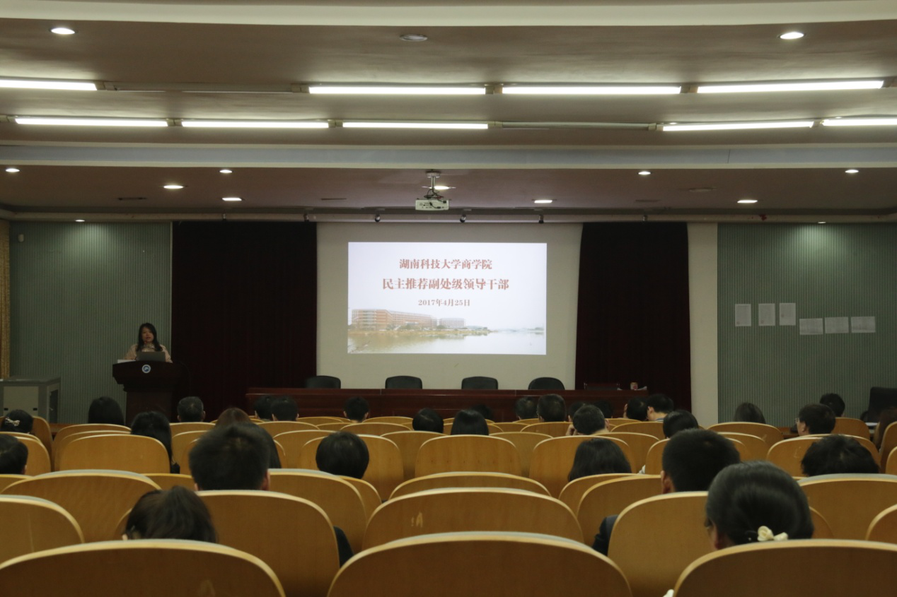 2017年4月25日,我院在三教楼101会议室召开综合性管理岗位副处级领导干部民主推荐会。会议由院党委书记仇怡主持,学校组织部向大顺副部长、3044am永利集团官网全体教职工参加了此次会议。
