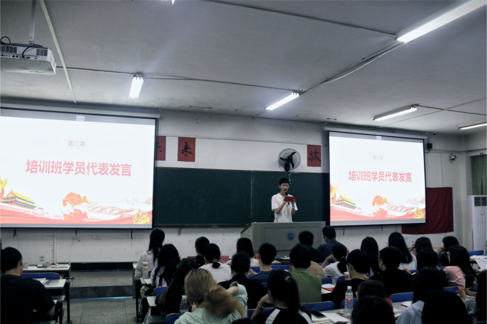 随后,培训班学员代表孙天博发言。他认为,作为新时代新青年,应该不断锤炼“坚持真理、坚守理想”的政治品格,不断发挥“模范带头、引领示范”的辐射作用,不断涵养“担当使命、立志报国”的家国情怀,持续提高政治判断力、领悟力和执行力,感党恩、听党话、跟党走,积极向党组织靠拢,力争早日成为一名合格的青年党员。