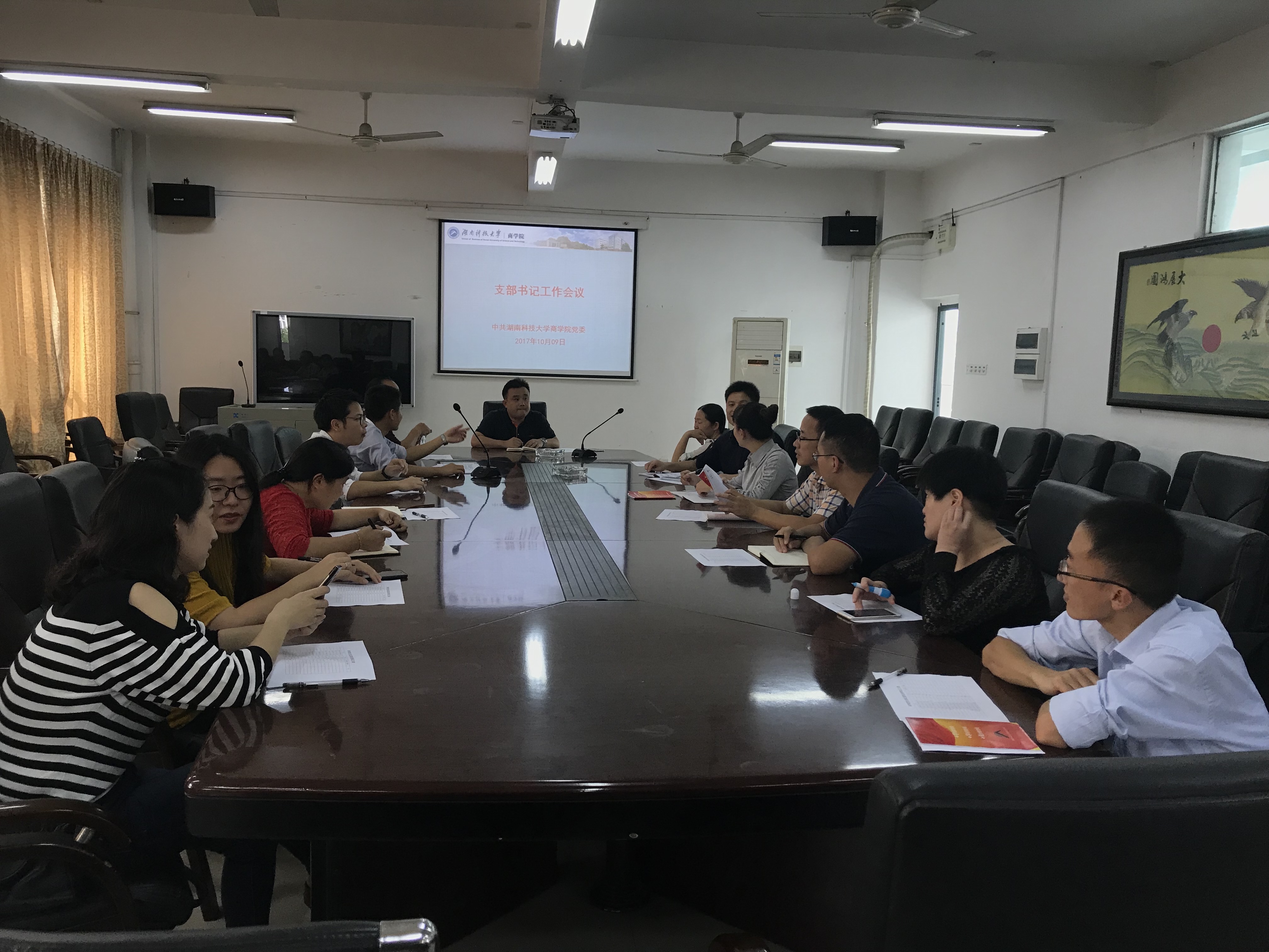 2017年10月9日,院党委书记潘爱民同志主持召开了支部书记工作会议,全体教工支部书记和学生支部书记参加会议。