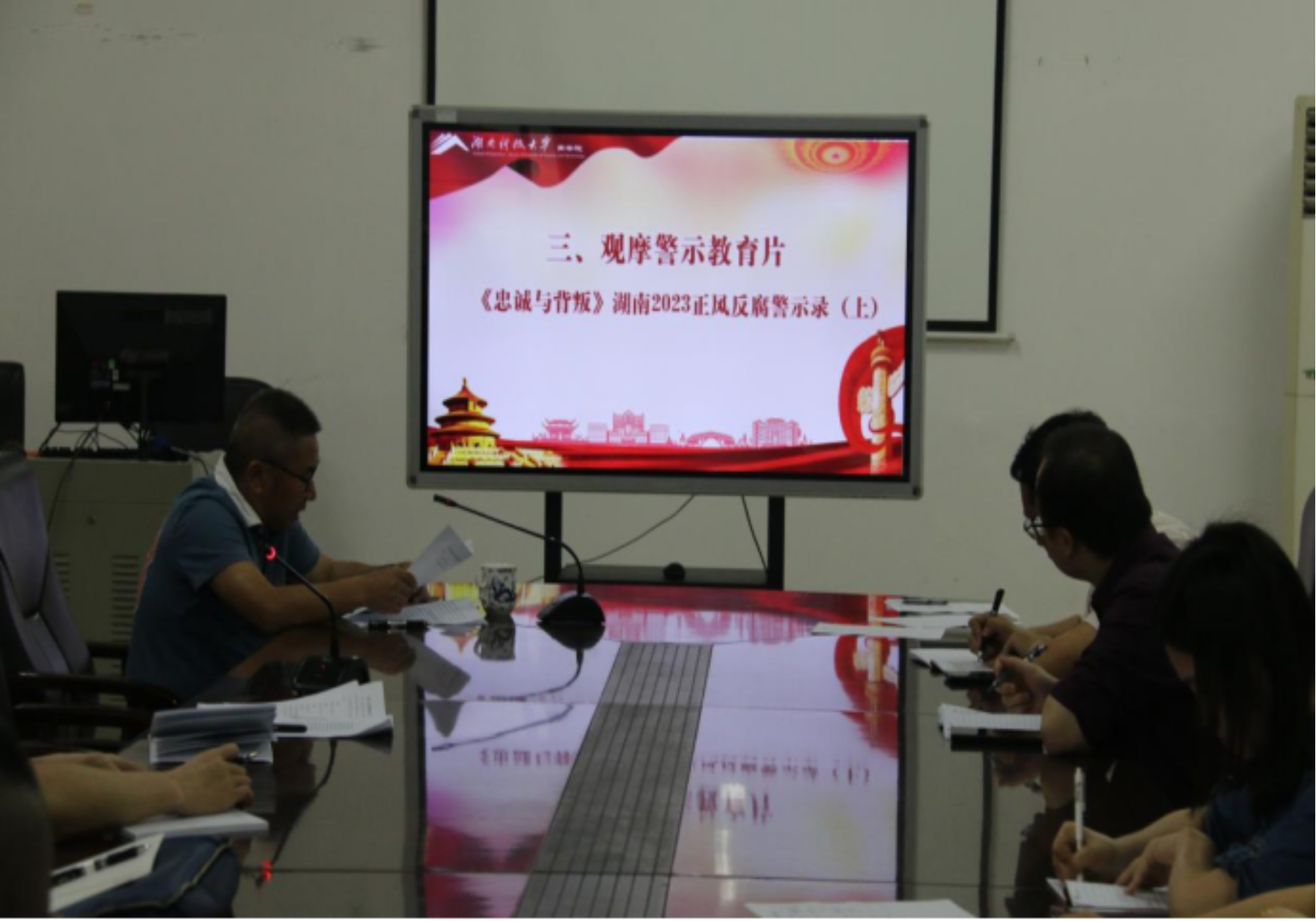 ▲观摩警示教育片