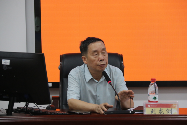 ▲校党委组织部原常务副部长、校特邀组织员刘龙洲教授授课