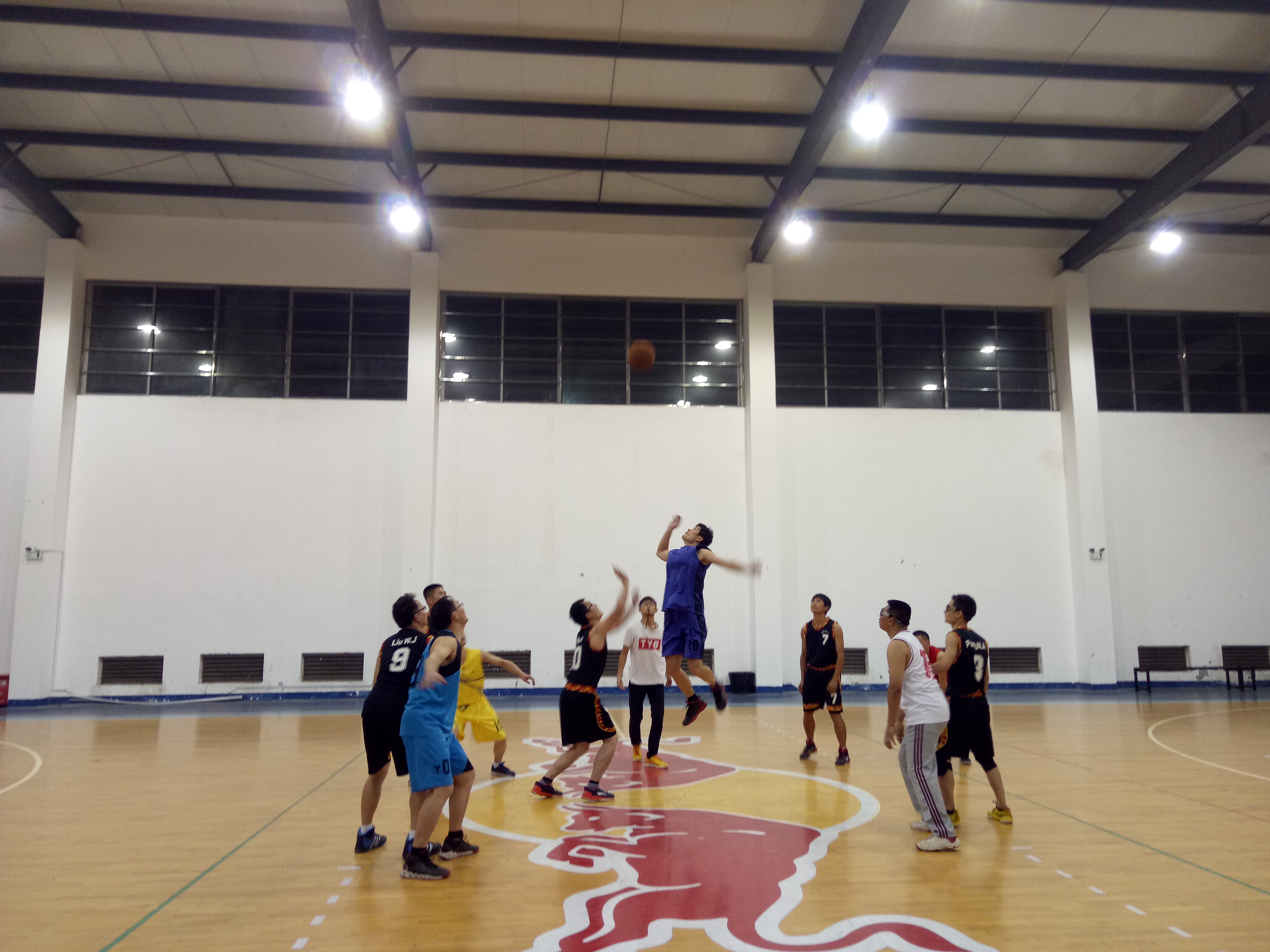 当日下午六点,向国成院长及各领导悉数到场,为我院球员加油助威。随着主裁判一声哨响,我院陈攀老师高高跃起率先跳球获得球权。赛中,我方球员陈应龙老师揽下数个关键篮板,将比分紧咬不舍。场边观众口号越来越响亮,这时柳卓超老师果断出手,三分投篮应声入网,上篮潇洒利落,尤其在第二节比赛中打入几波酣畅淋漓的快攻制造了比分小高潮,进一步吸引住了观众的目光。