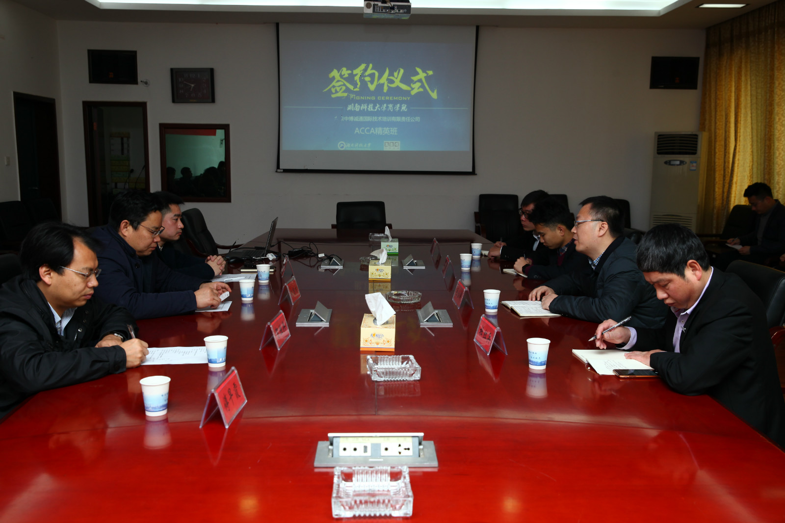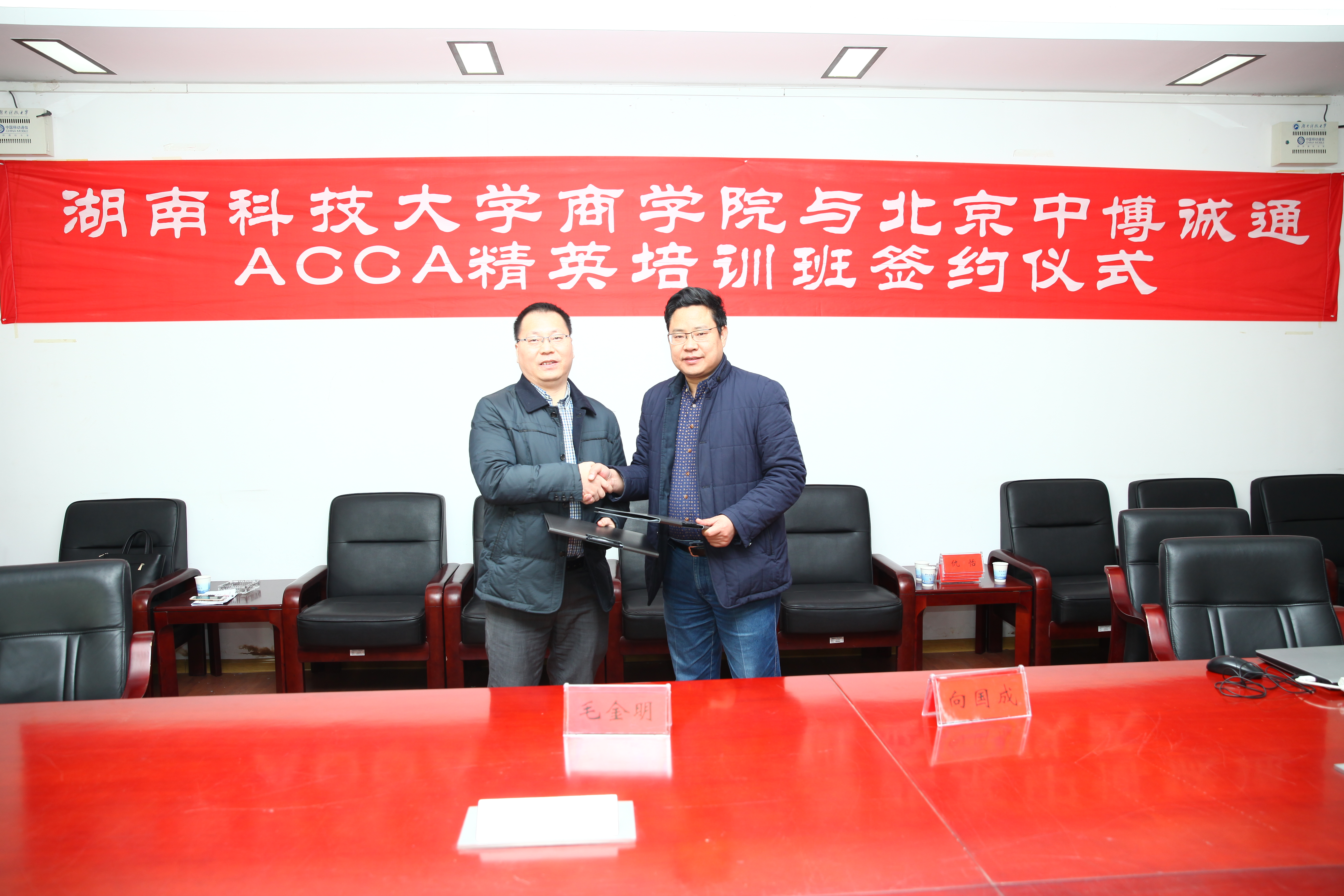 3月9日上午,3044am永利集团官网与北京中博诚通ACCA精英班签约仪式,在第三教学楼301会议室举行。会议由副院长邓淇中博士主持,3044am永利集团官网院长向国成教授、副院长贺胜兵教授、副书记傅早霞参加了此次签约仪式。