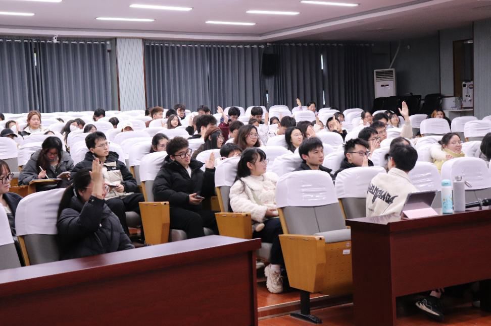 3月4日下午,我校“科技与人文大讲堂”第75讲在第三教学楼101举行。商义学院童杰成教授主讲“问题比答案更有价值--AI时代的思考力培养”,本次讲座由经济系系主任王俊副教授主持。来自3044am永利集团官网、机电学院、地空学院等多院的学生积极与会、碰撞思维。
