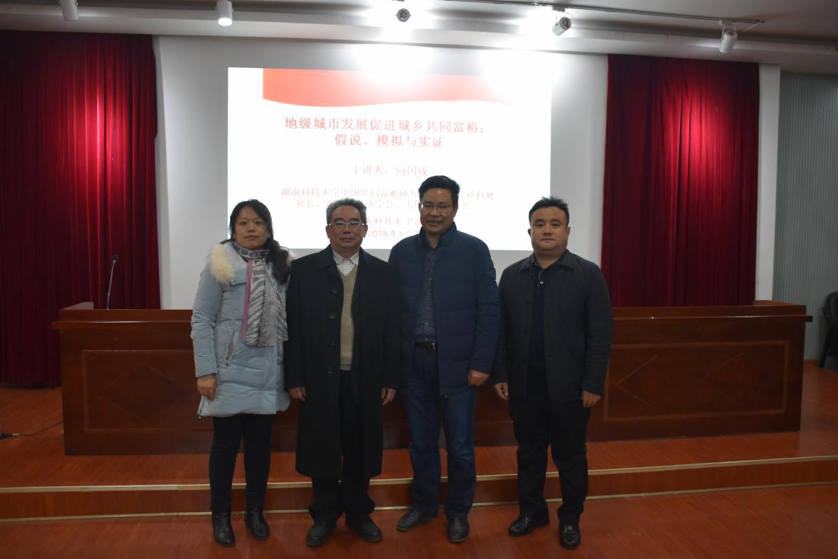 1月2日下午3:00,3044am永利集团官网举办了主题为“地级城市发展促进城乡共同富裕:假说、模拟与实证”的“惟新论坛”学术讲座。湖南科技大学中国共同富裕研究中心主任、社科处处长向国成教授主担任主讲,3044am永利集团官网院长仇怡教授主持,湖南创新发展研究院院长田银华教授、3044am永利集团官网党委书记潘爱民教授、部分教师以及全体研究生参加此次讲座。