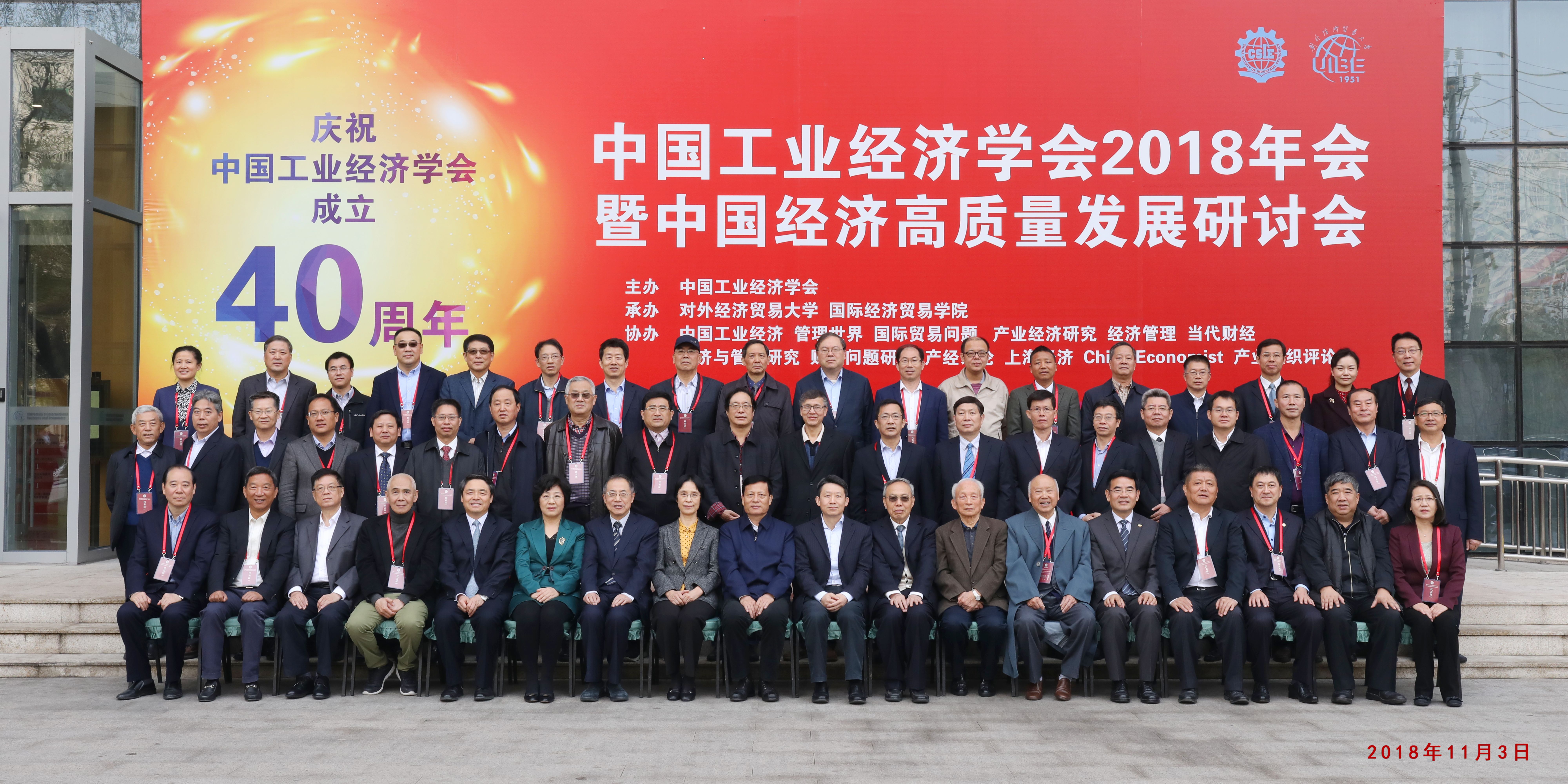 2018年11月3日,中国工业经济学会2018年会暨中国经济高质量发展研讨会在对外经济贸易大学国际交流大厦报告厅隆重召开。中国社会科学院院长、党组书记、学部主席团主席、学部委员谢伏瞻,第十三届全国人大常委、社会建设委员会副主任委员、国务院原副秘书长江小涓研究员,中国国际交流中心副理事长、中央政策研究室原副主任、中国工业经济学会原会长郑新立,国务院发展研究中心副主任隆国强,中国企业联合会、中国企业家协会常务副会长兼理事长,工信部原党组成员、总工程师朱宏任,中国工业经济学会理事长、中国社会科学院工业经济研究所党委书记兼副所长史丹研究员,对外经济贸易大学党委书记蒋庆哲、校长王稼琼等出席大会开幕式和马洪产业发展研究奖设立仪式。来自全国300余所高校和研究机构的400多人参会。我校原党委书记田银华教授、副校长刘友金教授、3044am永利集团官网副院长贺胜兵教授及部分博士后和博士研究生参加了此次年会。