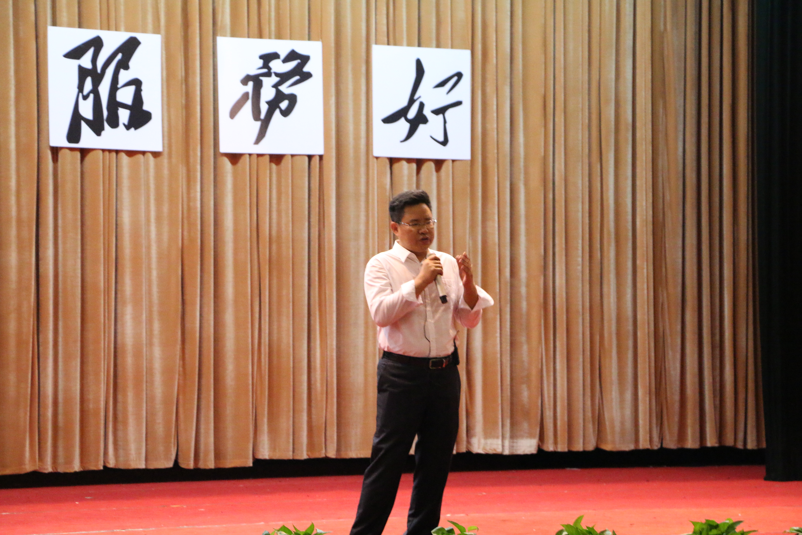 向院长提出了“为人民·服务好”的学院院训、以实业兴邦为己任的学院使命、专一至臻的学院精神和实干立命的学院作风四个提纲。“商品必须完成市场的惊险跳跃,这一跳跃成功与否,摔坏的不是商品本身而是商品生产者。 在为他人服务的过程中实现自己的价值。”他引用马克思的这一名言解释了经管学院的院训,他说:“这正与毛主席所说的‘全心全意为人民服务’的精神是完全一致的!”向院长逐一强调:要以创建一流学院为奋斗目标,主要是面向社会,培养具有企业家精神、从事财富创造的社会主义事业建设者;要有争第一的精、气、神;要做到“态度诚实、过程扎实、结果功实”三位一体。