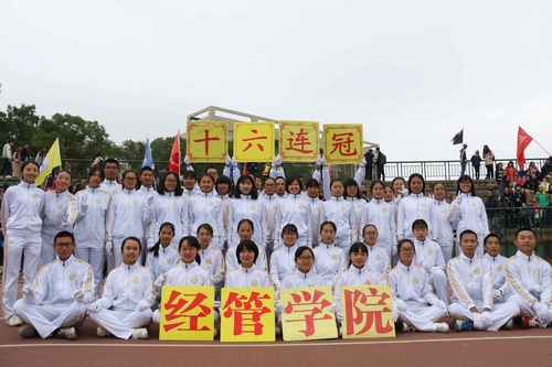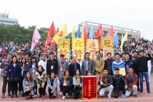 “十六连冠!”北校新田径场内鼓声震天,万人齐聚,欢呼阵阵,经济与管理学院成功拿下十六连冠,刷新秋运会又一奇迹!