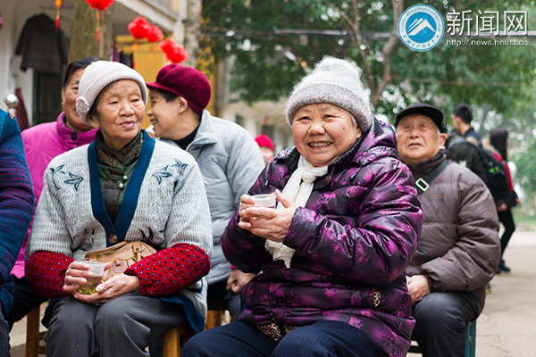 下午14点,志愿者们忙碌的身影穿行在陪护中心。志愿者挂起小红灯笼,简单的布置为热闹的小院更添几分节日喜色。幽篁古琴社的社员们则忙着调试乐器,为接下来的演出做好准备。老人们得知志愿者要来临的消息,纷纷提前搬来小板凳坐着等待演出的开始。志愿者们还贴心地为老人们送上提前准备好的瓜子花生,递上温热的茶水,陪老人们闲话家常。寒冷的冬日里,人群中不时传来欢声笑语。