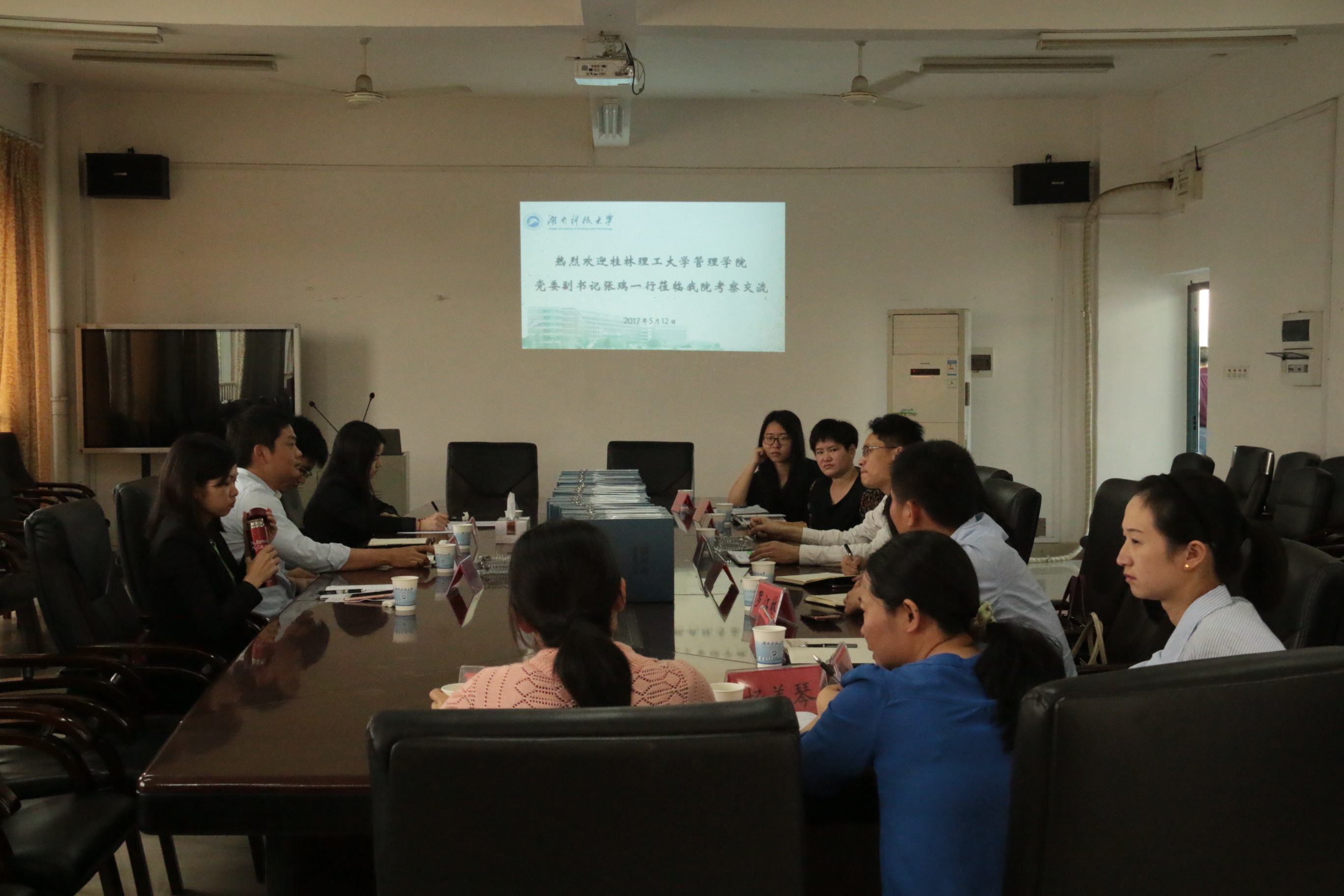 5月12日上午,桂林理工大学管理学院党委副书记张瑞一行4人来我院考察交流,院党委副书记傅早霞和辅导员代表接待了来访一行,双方在三教410会议室举行了座谈会。