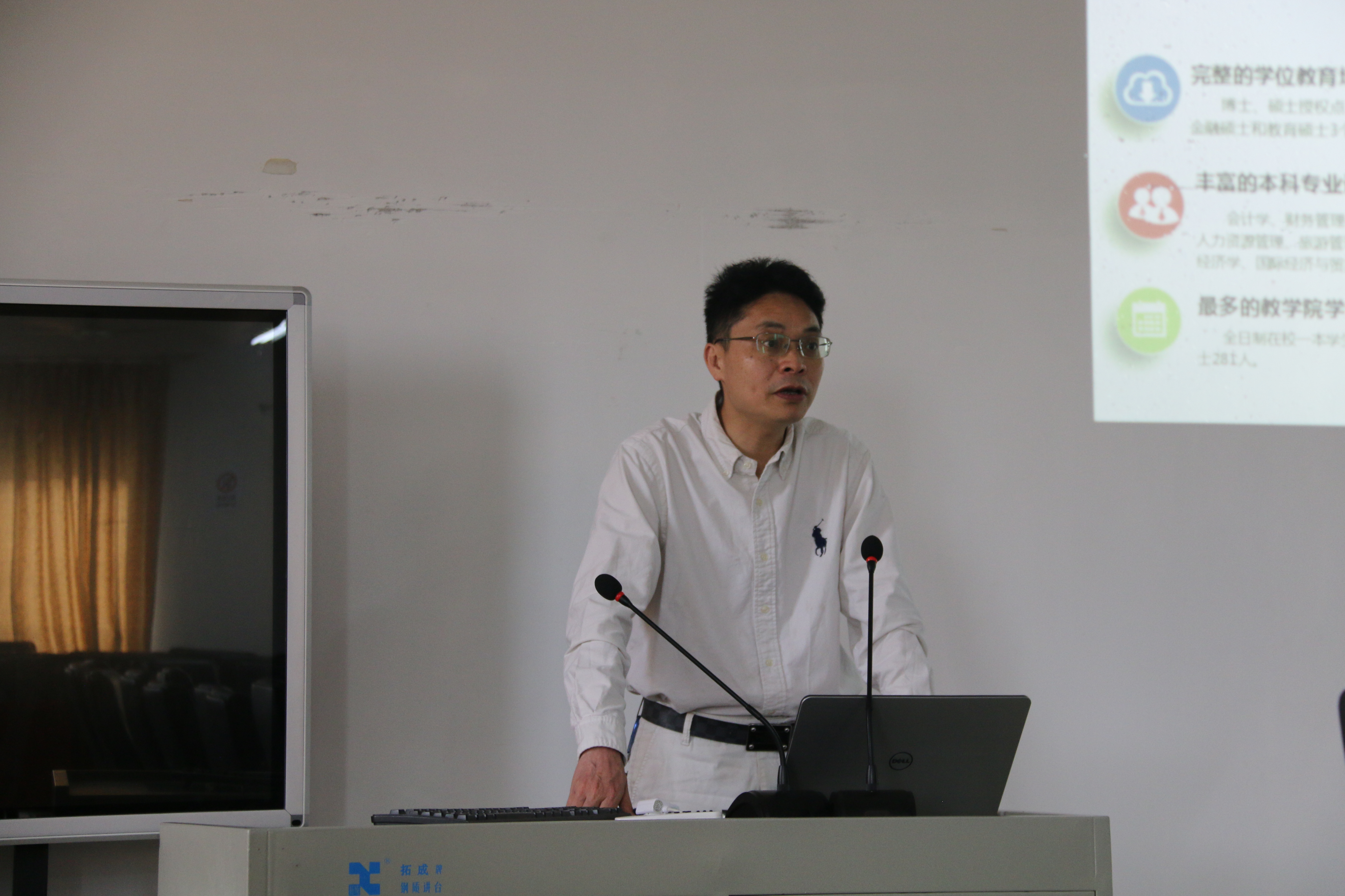 张瑞介绍了桂林理工大学管理学院的具体情况,主要包括教师队伍、辅导员队伍、专业设置、在校本科生与研究生的人数以及正在进行的申博项目,随后从辅导员队伍建设、党建工作、学风建设、新媒体平台创新等方面与我院进行了分享与交流。