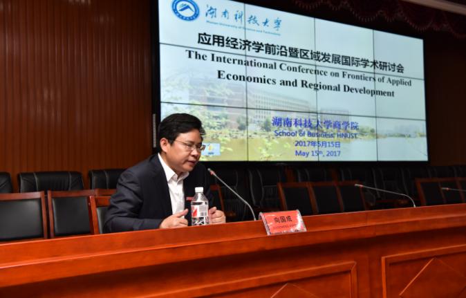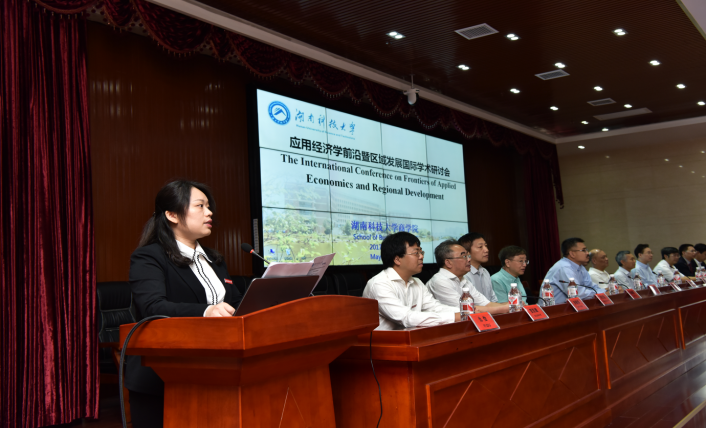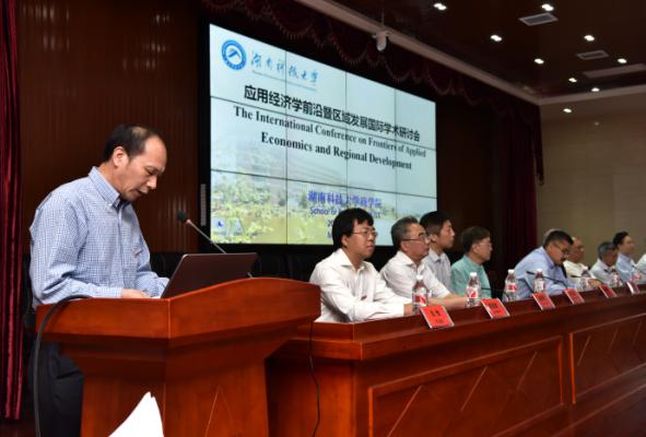 为加强我校与国内外知名高校应用经济学学科的交流,促进应用经济学学科的建设与发展,5月15日上午9:00,应用经济学前沿暨区域发展国际学术研讨会在湖南科技大学综合楼五楼东附楼会议室隆重召开。湖南科技大学校长李伯超教授出席开幕式并致辞,湖南科技大学副校长刘友金教授、校社科处处长向国成教授出席了开幕式,开幕式由3044am永利集团官网党委书记仇怡教授主持,社会科学处处长向国成教授主持了主题演讲。美国尼亚加拉大学Shawn Paul Daly、克里夫兰州大学教授周海刚教授、美国佐治亚州立大学教授徐振挥教授、新加坡南洋理工大学教授姚顺添教授等国外专家学者以及省内外著名应用经济学专家学者、3044am永利集团官网教师、博士及硕士研究生等200余人参加了国际学术研讨会。