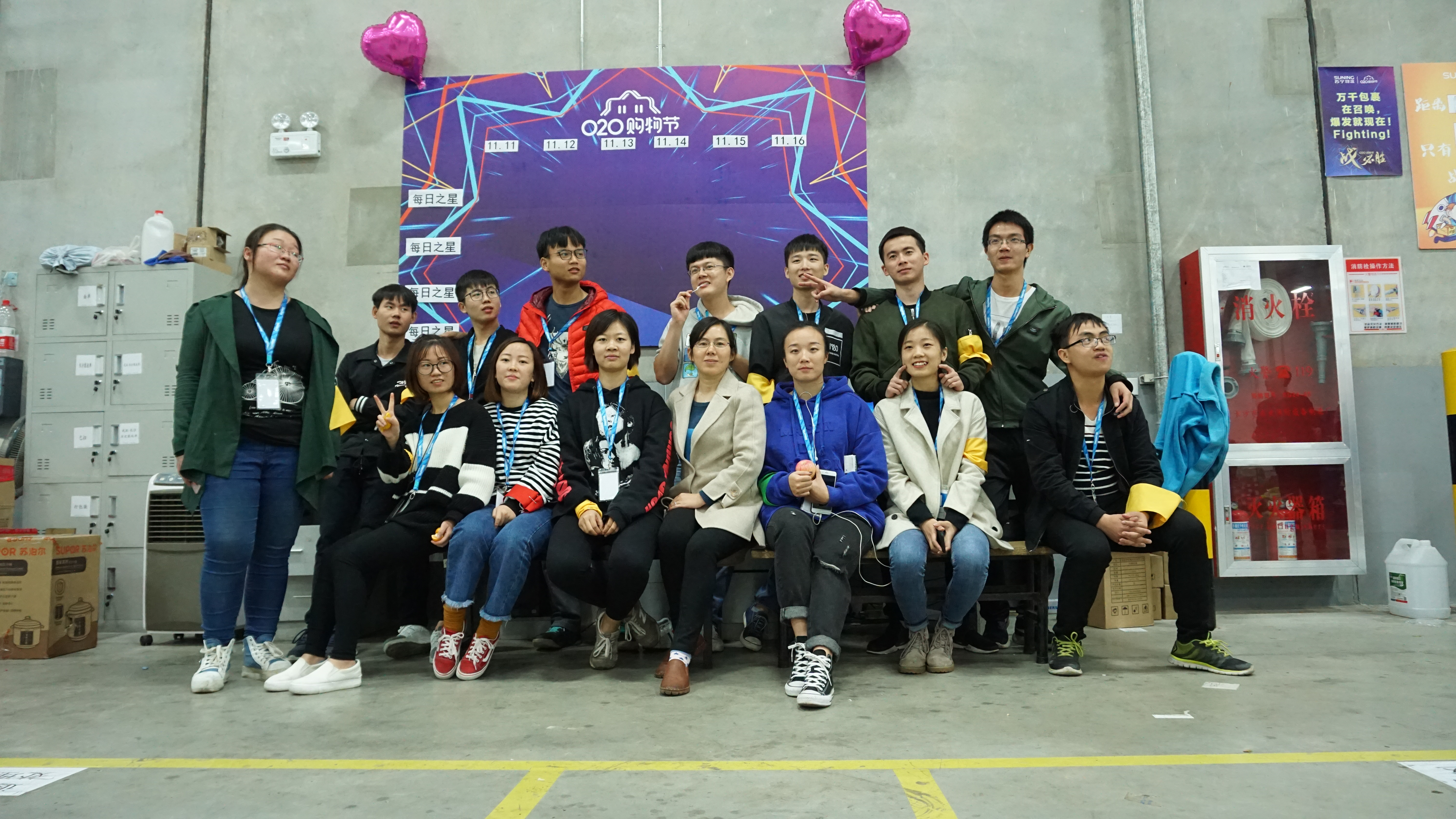 2017年11月10日,3044am永利集团官网电商与物流系系主任王晓乔老师以及电商专业张海燕老师来到苏宁永安小件仓,在湖南苏宁云商有限公司总经理窦祝平先生、湖南苏宁云商有限公司人事行政总监冯花女士、长沙苏宁物流有限公司总经理朱华军先生、人事经理杨雄伟先生等陪同下,看望了正在进行专业实习的14级电子商务专业的30位同学。两位老师与各位学生进行交流,深入了解学生们的实习情况。