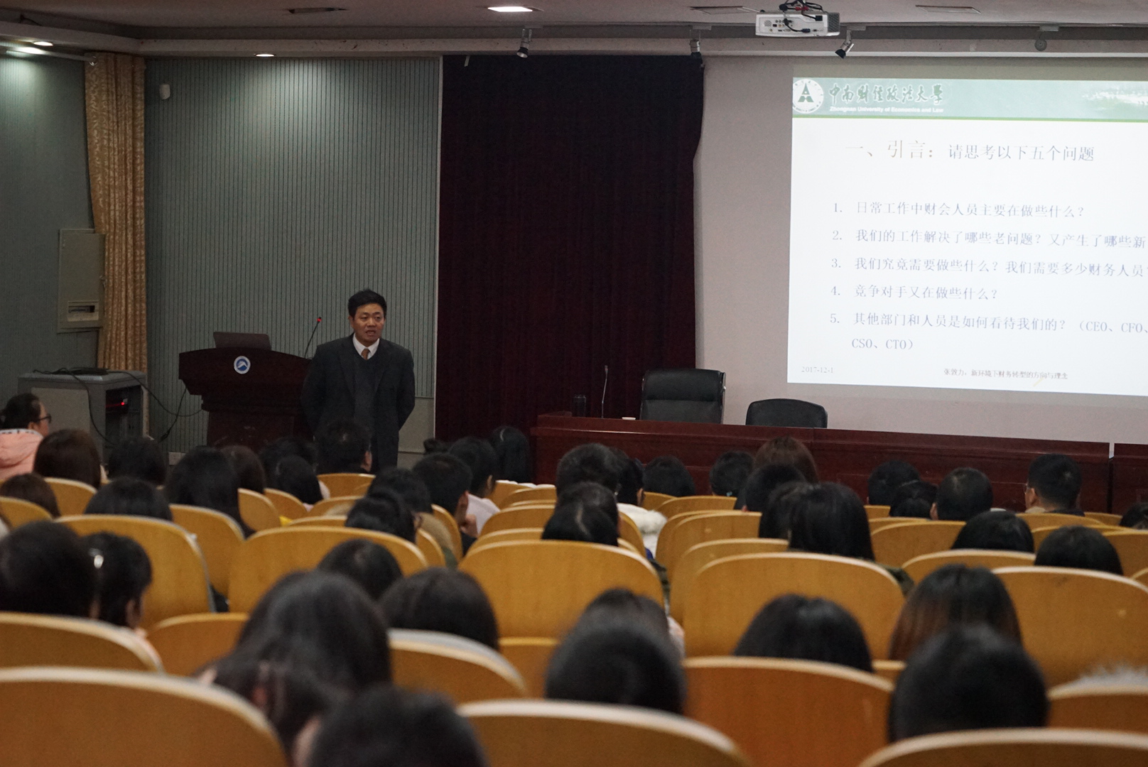 2017年11月28日下午3:00,中南财经政法大学会计学院院长、博士生导师张敦力教授应邀在3044am永利集团官网101学术报告厅,以“新环境下财务转型的方向与理念”为题,为我院师生讲学。本次讲座由3044am永利集团官网副院长颜剩勇教授主持,部分老师、2016和2017级博士研究生以及硕士研究生参加此次讲座。