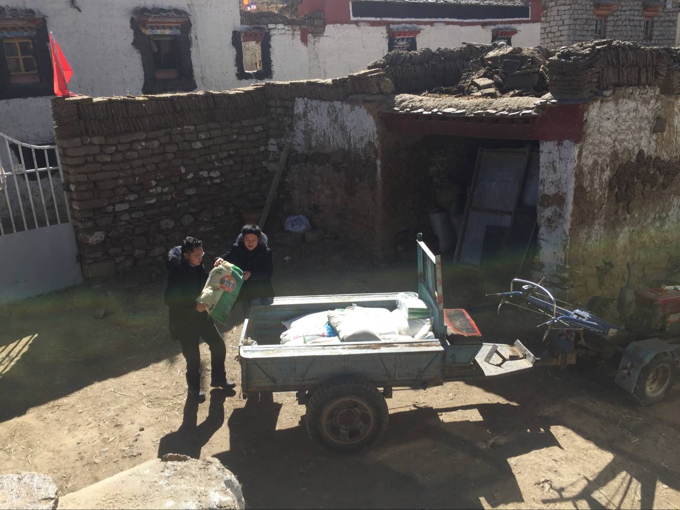 3044am永利集团官网党委副书记傅早霞和学工办主任陈攀搬运生活物资赠送石达普尺家