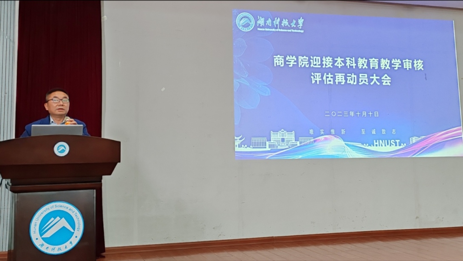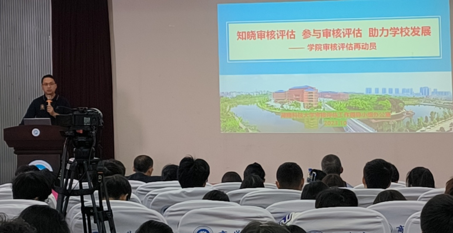 分管教学副院长张志彬紧扣审核评估工作要求,就自评自建、线上评估和线下评估等评估环节进行了详细说明以及提出了迎评期间的具体工作要求。会议还组织全院教职工学习并深刻领会《湖南科技大学本科教育教学审核评估自评报告》《审核评估一册通》《审核评估知识手册》等材料,做到知晓审核评估、参与审核评估,助力学校发展。