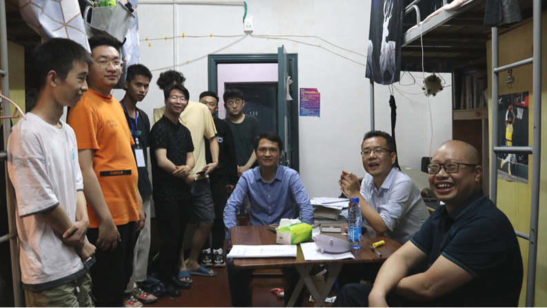 下寝过程中,老师们详细了解同学们的就业情况,耐心倾听同学们关于未来的困惑以及现在面临的困难。谈到毕业季的迷茫和初入社会的压力,班主任胡黎明向同学们分享了自身工作经历,他说,毕业代表校园生活的结束,也代表人生新阶段的开始,感受到压力是正常的,但大家要正确对待这份压力,理性思考自身发展愿望、慎重规划未来发展路径,这样才能更快适应新的生活。班主任曾剑云与同学们探讨了就业选择和职业发展的问题,解答了毕业生在求职方面的困惑,他希望同学们可以发扬终身学习的意识,不断丰富自身内涵,在今后的工作中走得更稳,飞得更高。系主任周志强则告诉同学们,有任何想法都可以跟老师们交流,有任何困难老师们都会和大家一起面对。学院会给予毕业生最大的支持,帮助大家顺利步入人生的新阶段。其他老师也和同学们进行了深入交流,对同学们表达了真挚的祝福,希望毕业生们能够乘风破浪,乘梦远航。