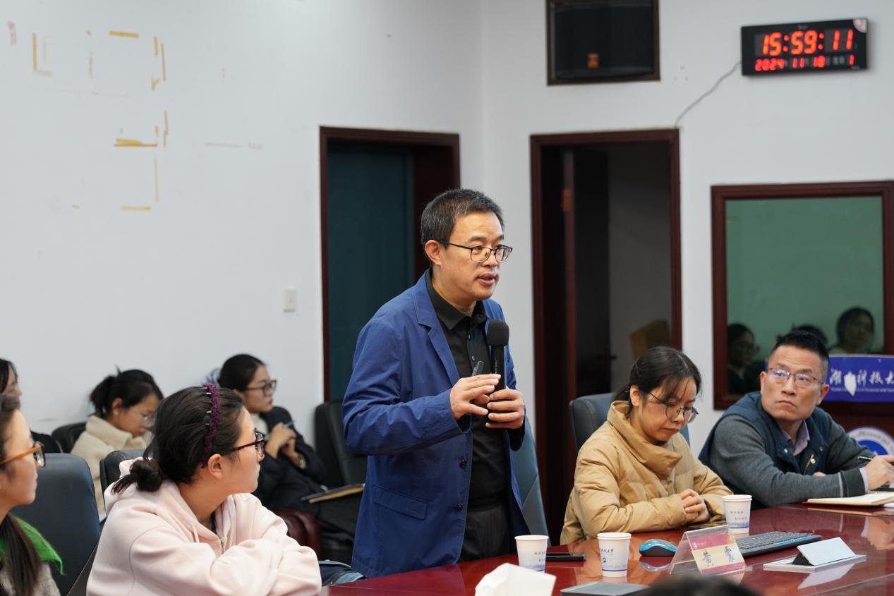 黄震从工业革命讲到新质生产力,细致解读了“科技”“金融”“法律”三者的融合趋势,最后还通过分析盲人摸象的故事提出了三个关于人才培养的重要观点,即跨学科融合的重要性、实践与理论的结合与持续学习与适应能力,这引发了在场师生的思考与讨论。此次讲坛学术氛围浓厚,不仅为现场师生提供了新的发展方向,还对学校人才培养创新教育模式的发展与完善具有重要启发意义。