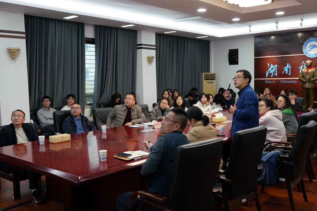 11月18日下午,3044am永利集团官网湘江高端学术论坛暨立言讲坛193讲于第三教学楼301会议室开展,中央财经大学黄震教授作了题为“科技、金融、法律交叉融合趋势与人才培养创新模式”的学术报告。讲坛由3044am永利集团官网副院长戴魁早主持,3044am永利集团官网党委书记叶文忠、国际贸易与金融工程系主任潘竟成与会,学院部分老师及学生到场聆听。