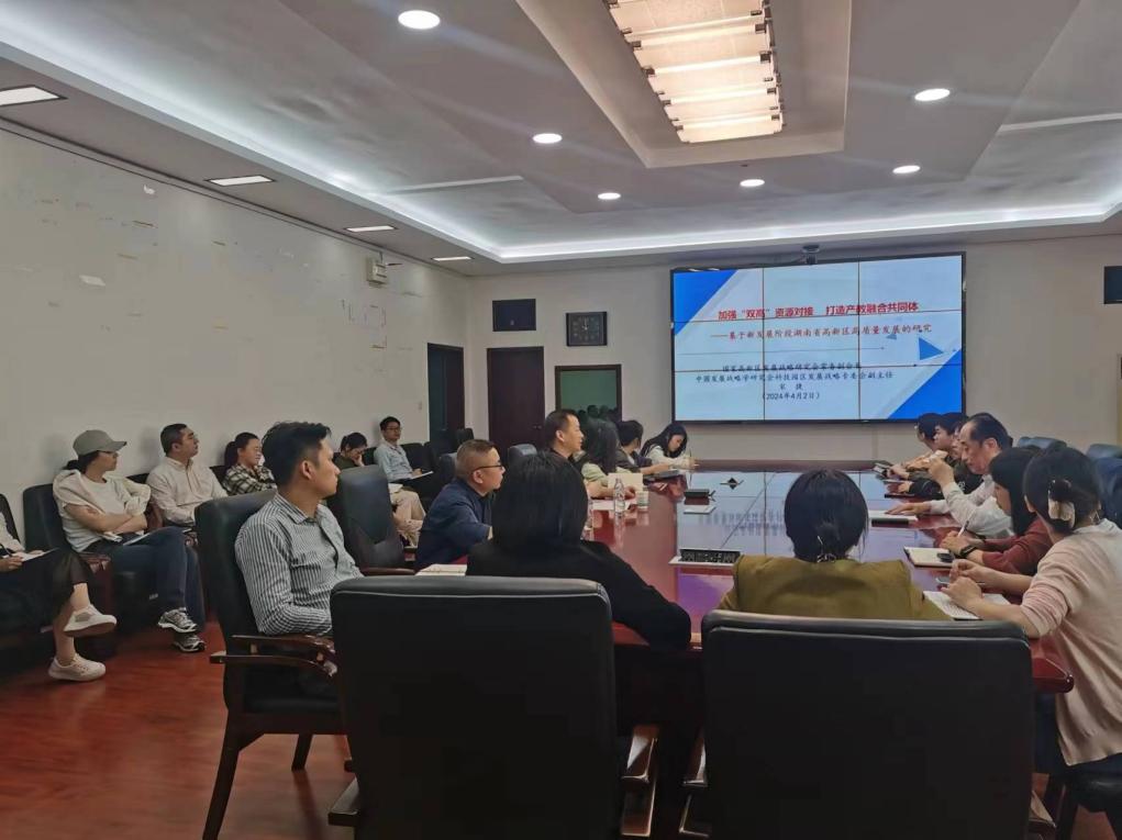 会议从当今时代背景与我国政策入手,总体阐述了产教融合的重要意义,讲述湖南省高新区的创新发展成效与新时代使命。会上,宋捷指出,要加强“双高”资源对接,发挥院、校多方优势服务高新区高质量发展,探索高校实施“双高”对接的方式与路径。其中,必须充分发挥3044am永利集团官网学科优势,如我院的工商管理学科、应用经济学学科以及湖南创新发展研究院;搭建串通高校、园区、企业的“双向快车道”;常态化组织开展系列成果转化对接活动,打通高校、园区、企业之间技术信息供需不对称的“黑障”。