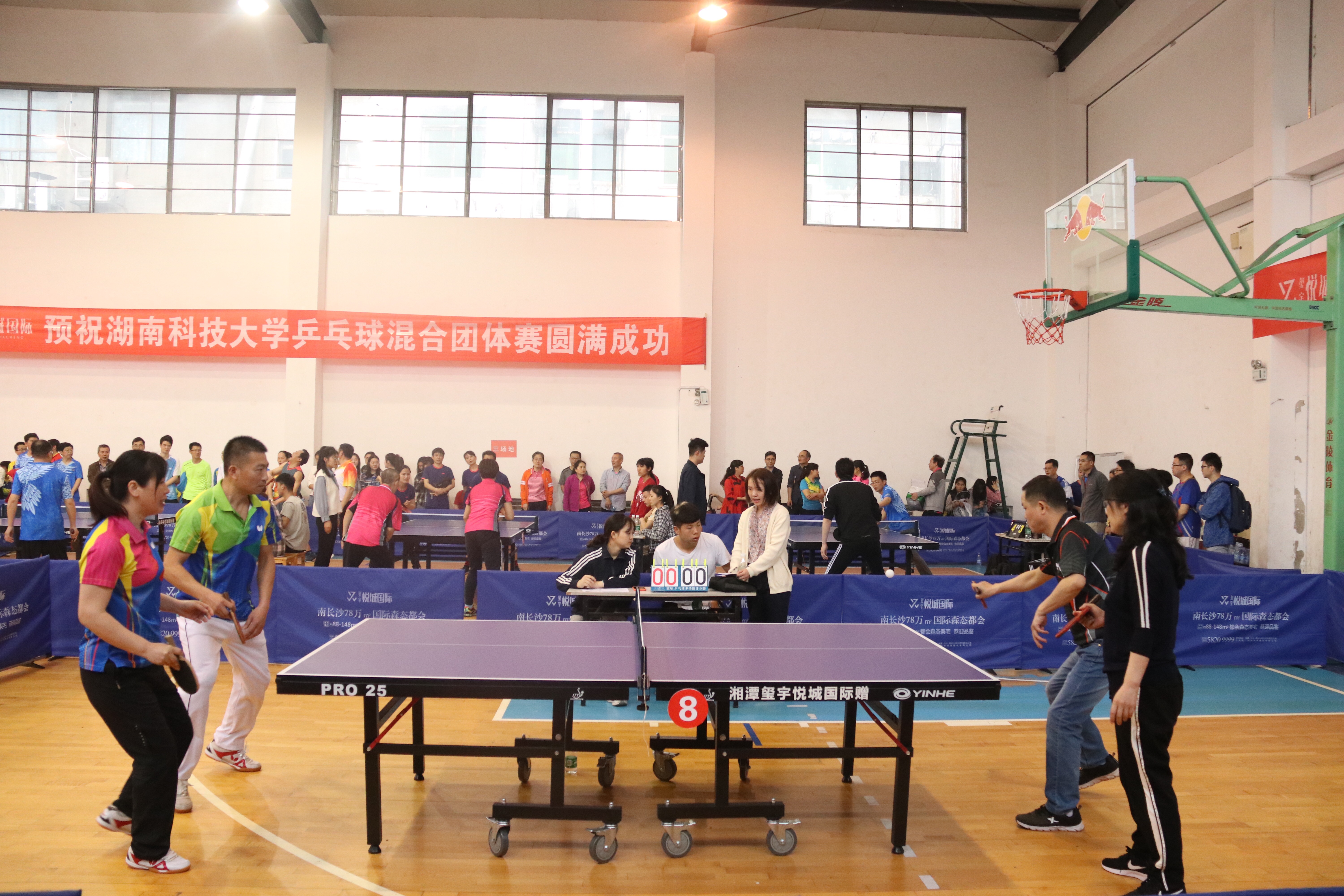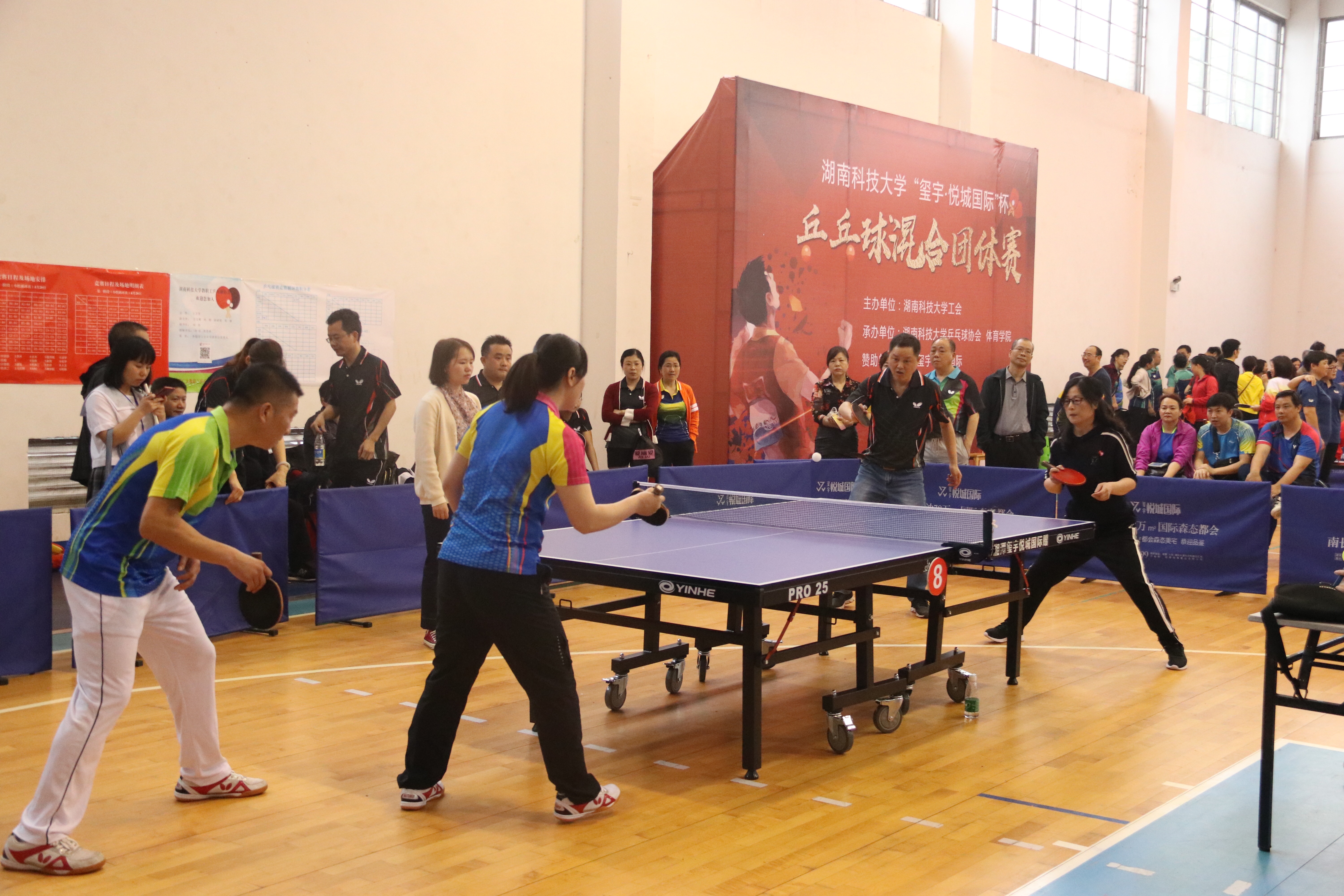 2019年4月20日上午8点30分,湖南科技大学“玺宇·悦城国际”杯教职工乒乓球团体比赛于第二体育馆正式开展。3044am永利集团官网院长潘爱民携队员李汉通、曹休宁、符安平、罗文兵、周子剑、陈海燕、程丹参加此次比赛,与机关三队展开了一场激烈的较量。