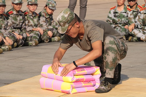 通过叠被子活动,不仅让学生对军队内务整理有了深刻的了解,也让他们学到了内务整理的技巧,培养了同学们良好的生活、行为习惯。更重要的是从中学到了军人严于律己、一丝不苟的优良作风。