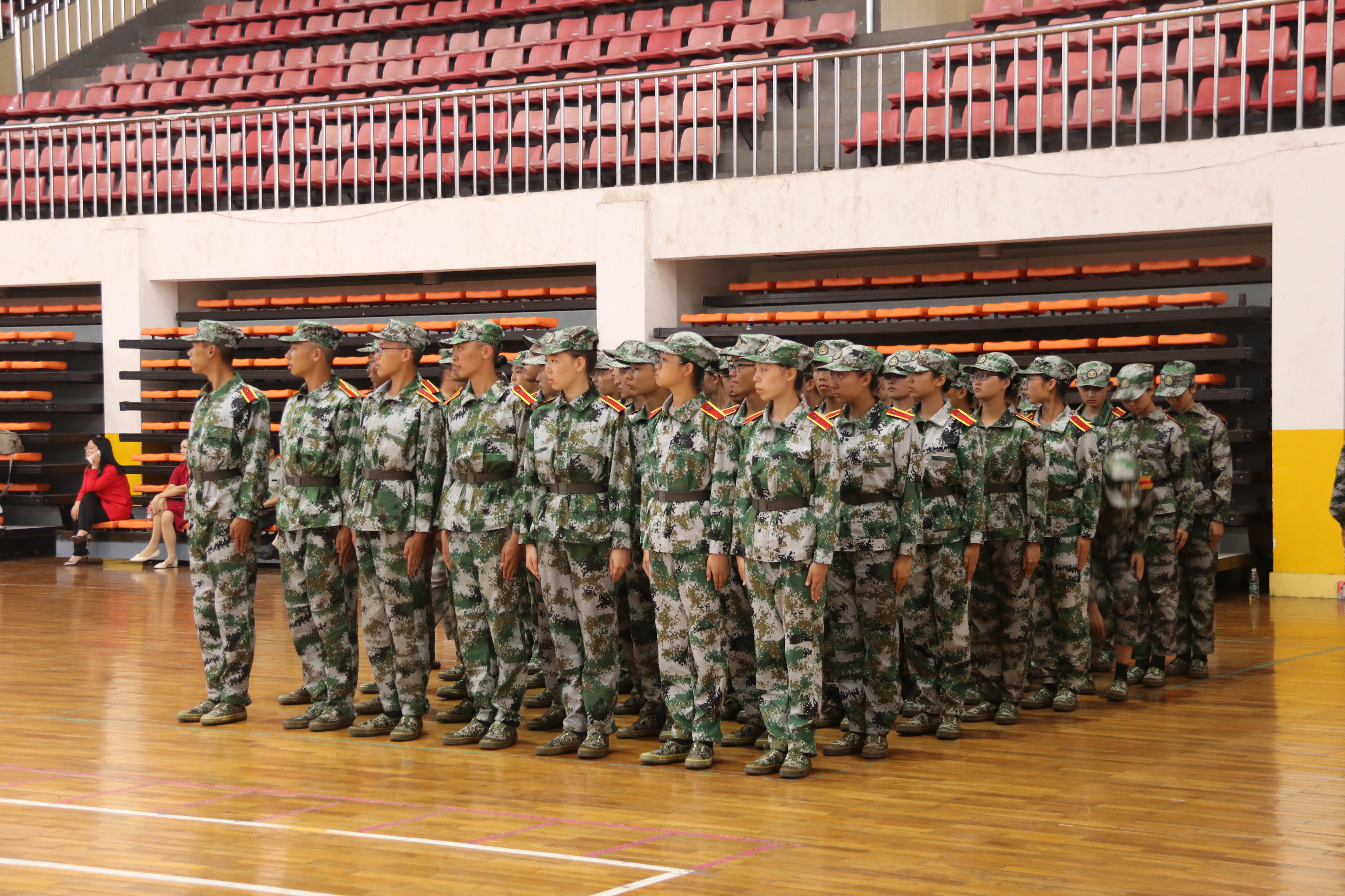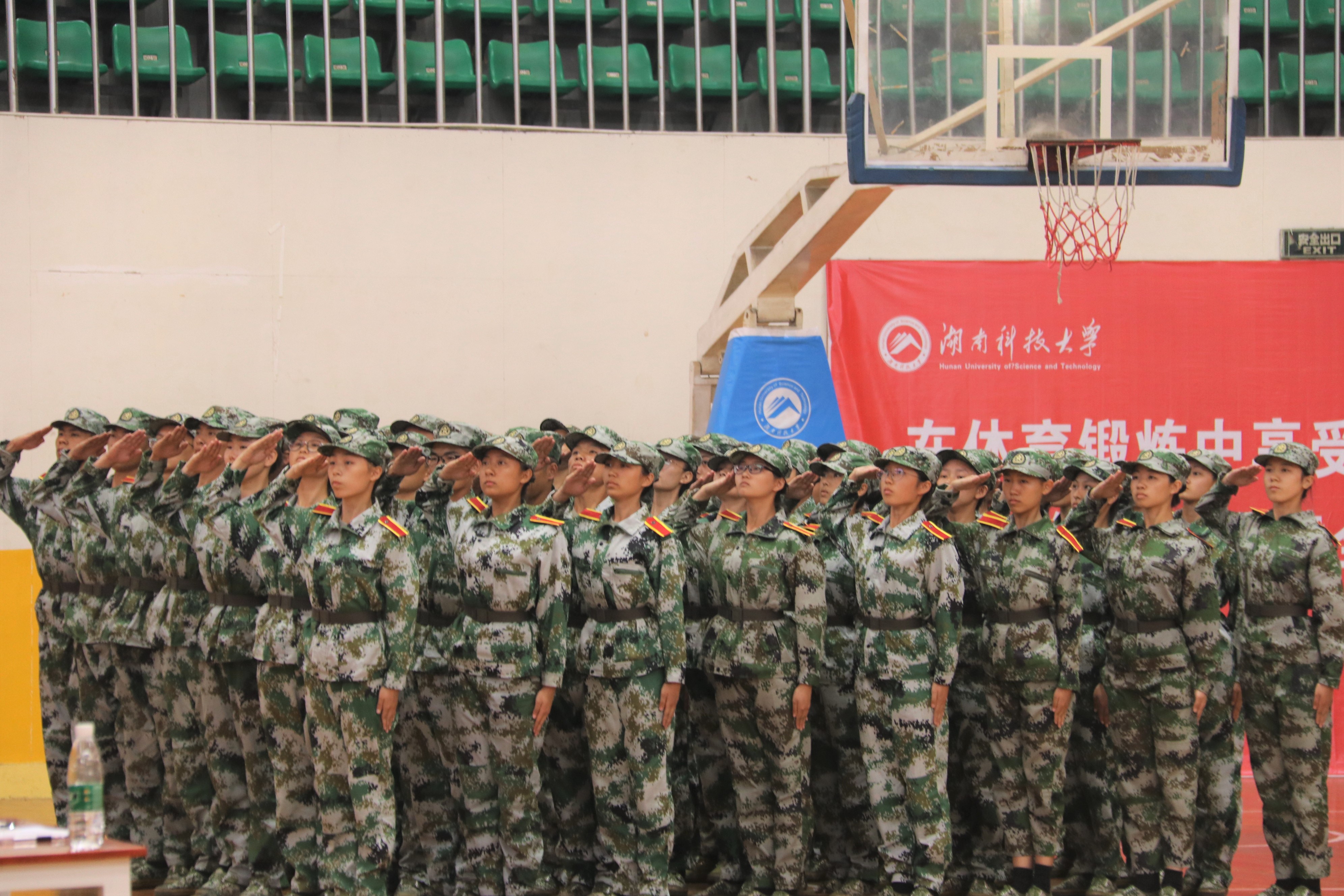 为对18级新生军训训练成果进行检验,10月8日14:00,湖南科技大学于北校区体育馆内展开了18级新生军训队列会操评比,3044am永利集团官网全体新生赴往参加。3044am永利集团官网党委书记潘爱民、党委副书记傅早霞、学工办主任陈攀及18级辅导员郭志军前往观看。