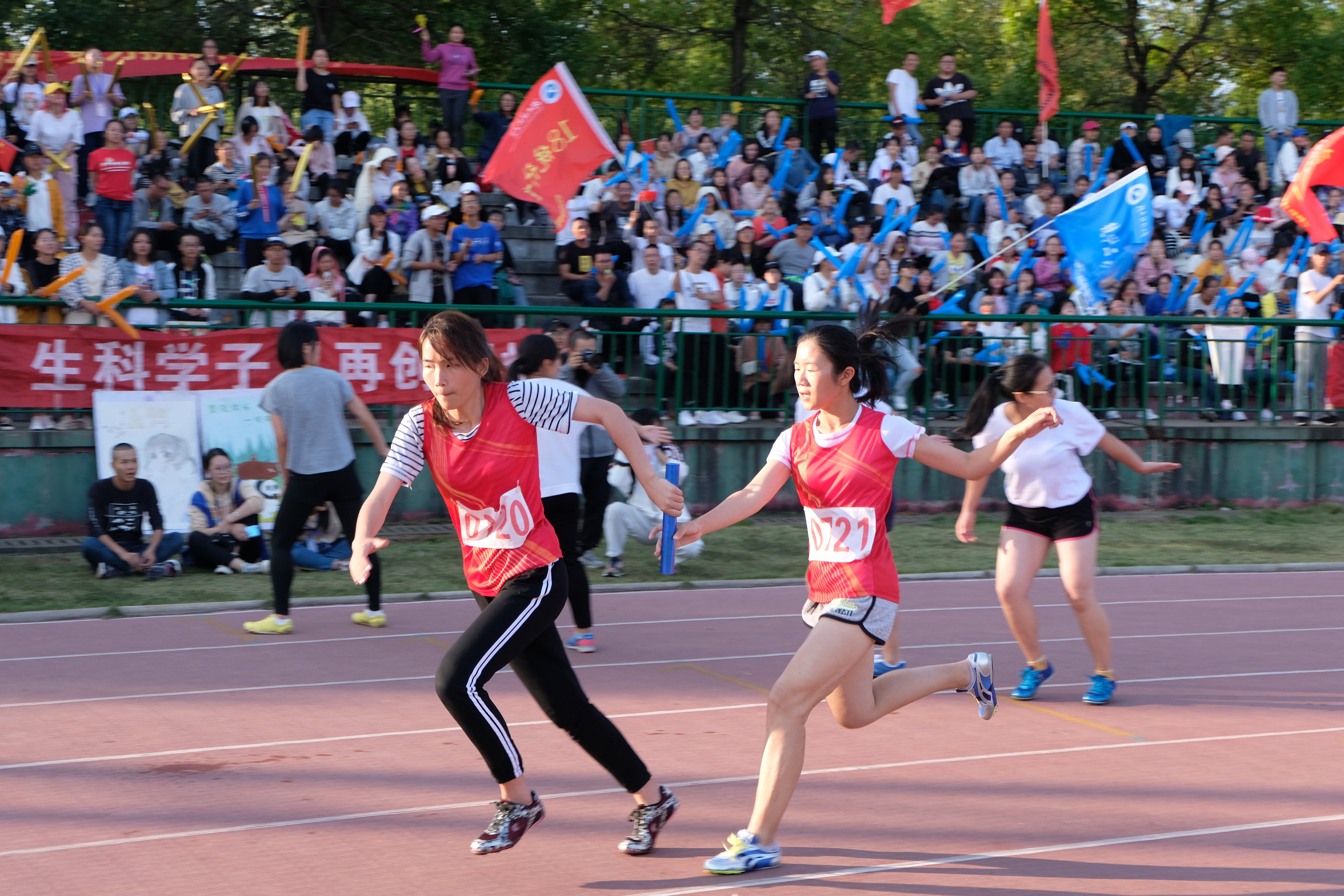 女子运动员的出色发挥将运动会气氛推向高潮,看台上,同样热情似火的观众们摇旗呐喊,加油声此起彼伏。