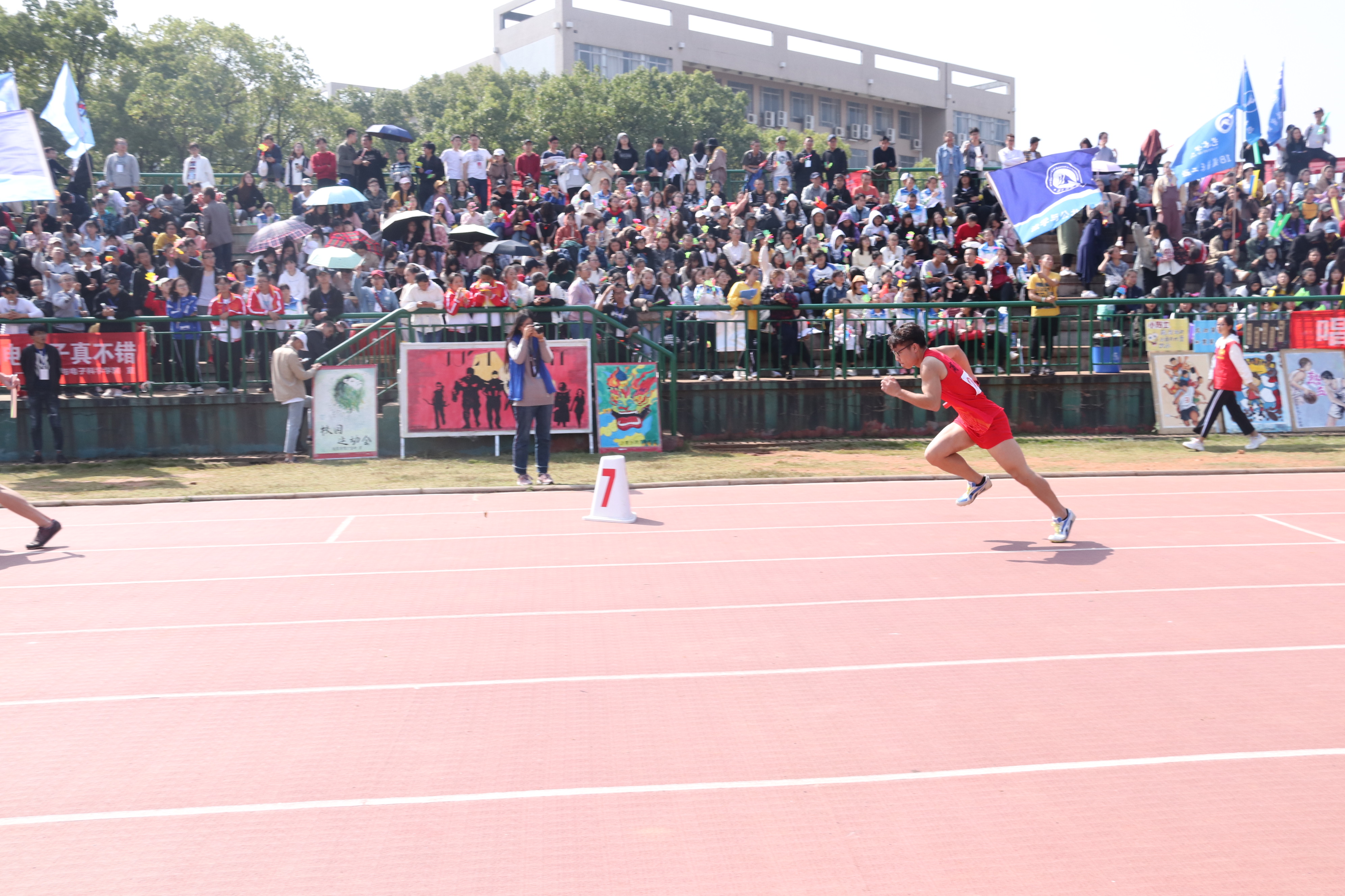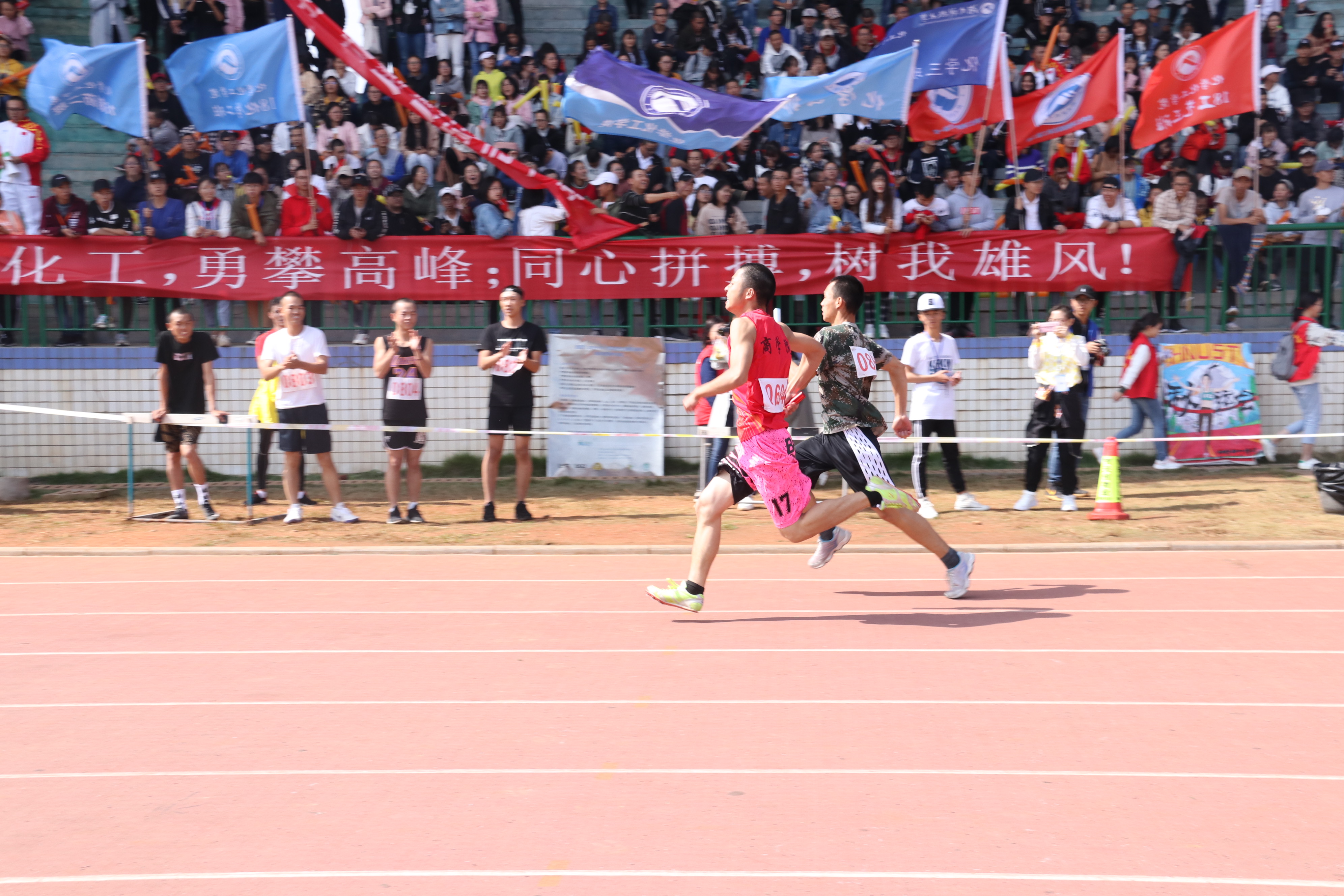 有了女子组的精彩“抢先看”,男子组的表现也愈发令人期待。以17级国际经济与贸易专业2班卓永超为代表的男子组上场了。在一阵阵加油声中,听“砰”地一声枪响,第一棒选手卓永超像一支离弦的箭一般冲了出去,他遥遥领先,准确无误地把棒子传递给了下一个,并最终拿下了小组第一。