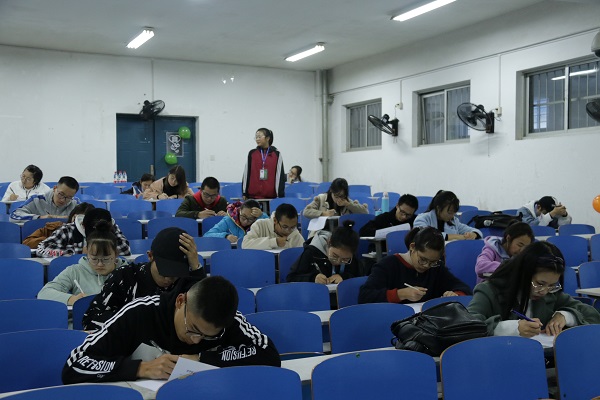 本次竞赛分为40分钟的笔试和附有PPT的演讲两个环节。笔试过程中,考场安静肃穆,考生认真作答,治保部秩序维护人员严肃监督每一位考生。笔试结束后,考生有序交卷。接下来的演讲环节是本次活动夺目之处,选手们根据PPT内容表达了自己对于艾滋病相关的想法与见解。期间,他们与台下观众进行了多次互动,场面气氛活跃,观众区掌声如雷。随后,经过评委们的一番讨论,比赛结果出炉,18级国际经济与贸易专业3班的赵萌荣获第一名。