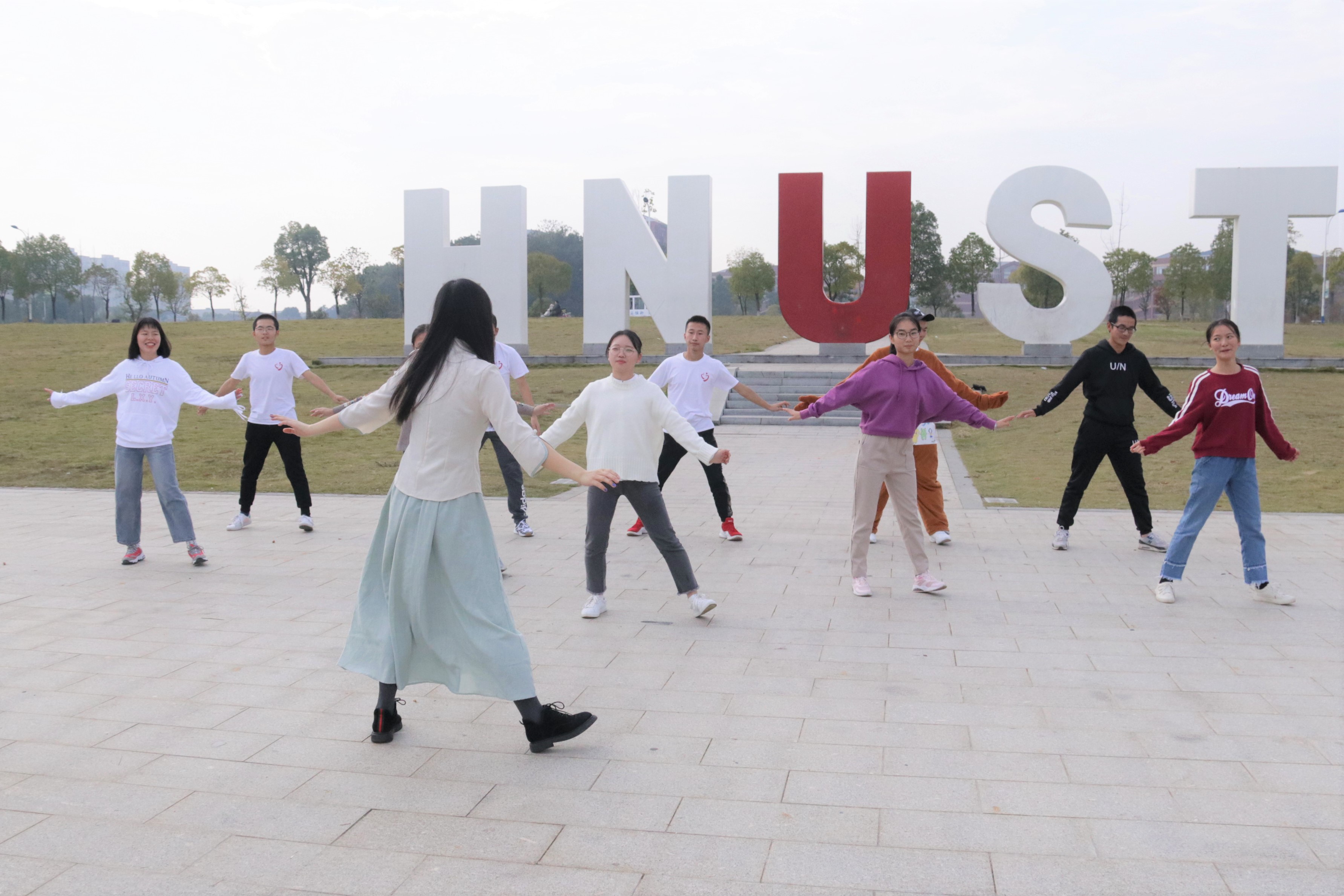 14:30,活动在学校东门持续进行。活动伊始,心健部成员为同学们献上了近期十分火热的《东西初恋舞》,两位特殊嘉宾——皮卡丘和布朗熊呆萌呆萌的舞蹈动作让人忍俊不禁,引得路过的同学也纷纷加入。随后,游戏参与者围成椭圆,共同“比心”并奔向卡通人偶,现场气氛异常温馨。