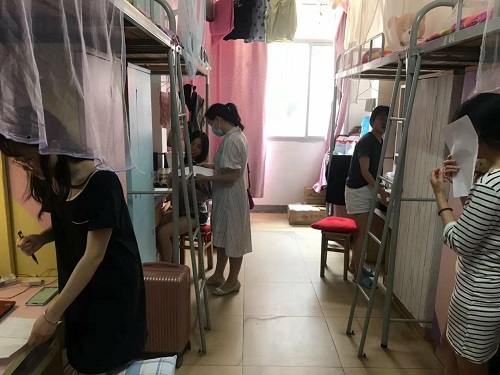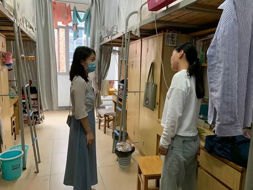 辅导员们下寝不仅是为了落实学校的防疫措施,更是为了把关怀给予到每一个返校复学的学生,倾听每一位学生的心声,让他们感受到学校的关心与关爱,能够更安心地在校学习与生活。当谈到毕业季时,傅早霞书记如是说到“今年由于疫情,本科毕业生在校时间非常短,但我们会尽最大的努力让他们感受到学校的温暖。用最短的毕业季,给同学们留下最深刻的师生情谊。”