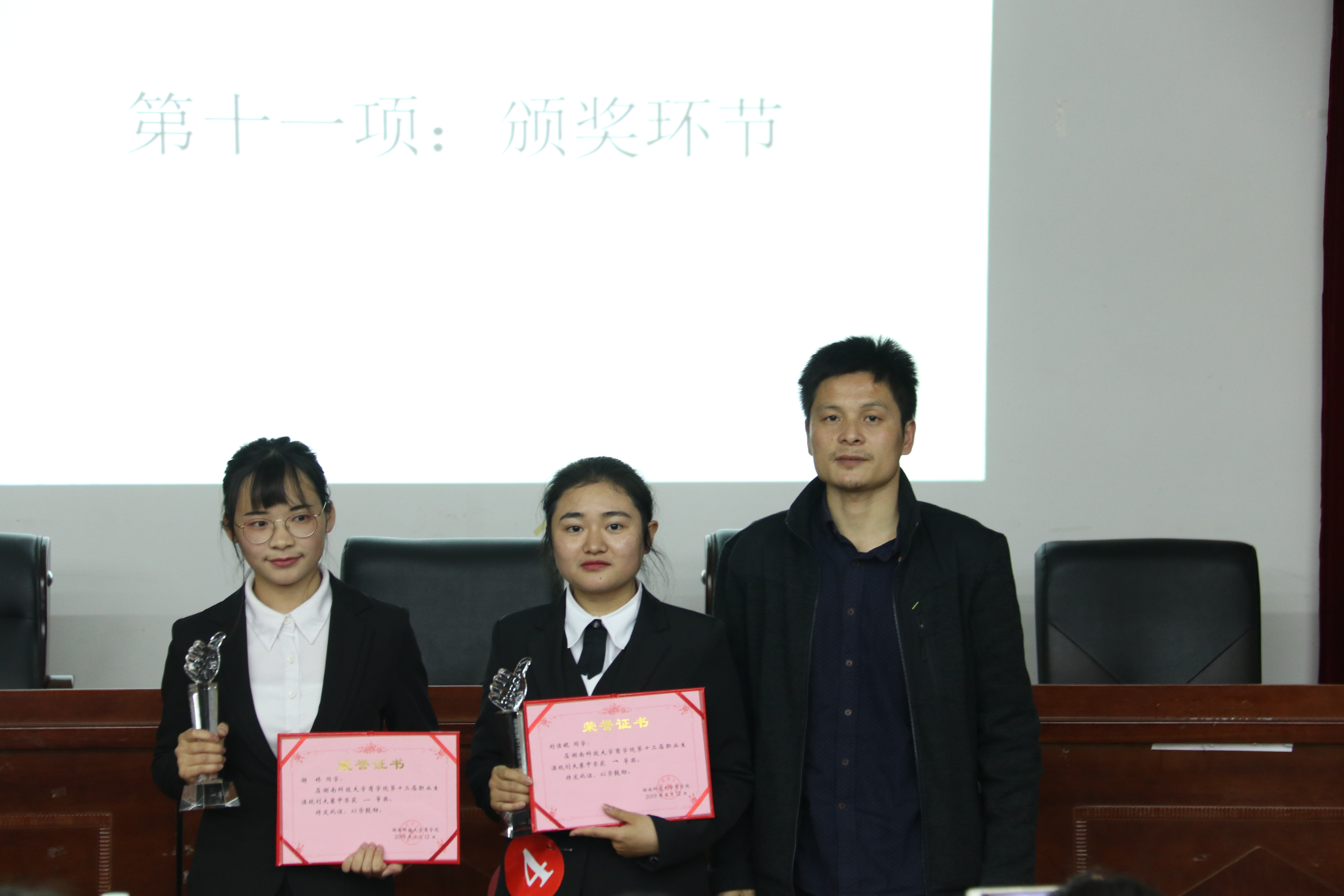 本次比赛共有两个环节:选手演讲及评委提问与点评。选手以四人一组的形式分别进行现场展示,展示结束后集体上台接受评委提问,评委根据选手综合表现进行现场打分。各选手结合PPT演示文稿,对自我认识、外部环境进行了全面的分析,并明确提出了未来职业发展目标以及具体实现方案。比赛中选手们把控住会场气氛,台风稳健,自信地阐述着自己的职业规划。接下来是评委现场提问环节,这十分考验选手们的临场应变能力,但各选手都不慌不忙,冷静应对,给出的回答有理有据、逻辑清晰,评委们也相应地给出了细致的点评和建议。经过激烈的角逐,刘佳妮与谢娇两名选手凭借出色的表现荣获一等奖。