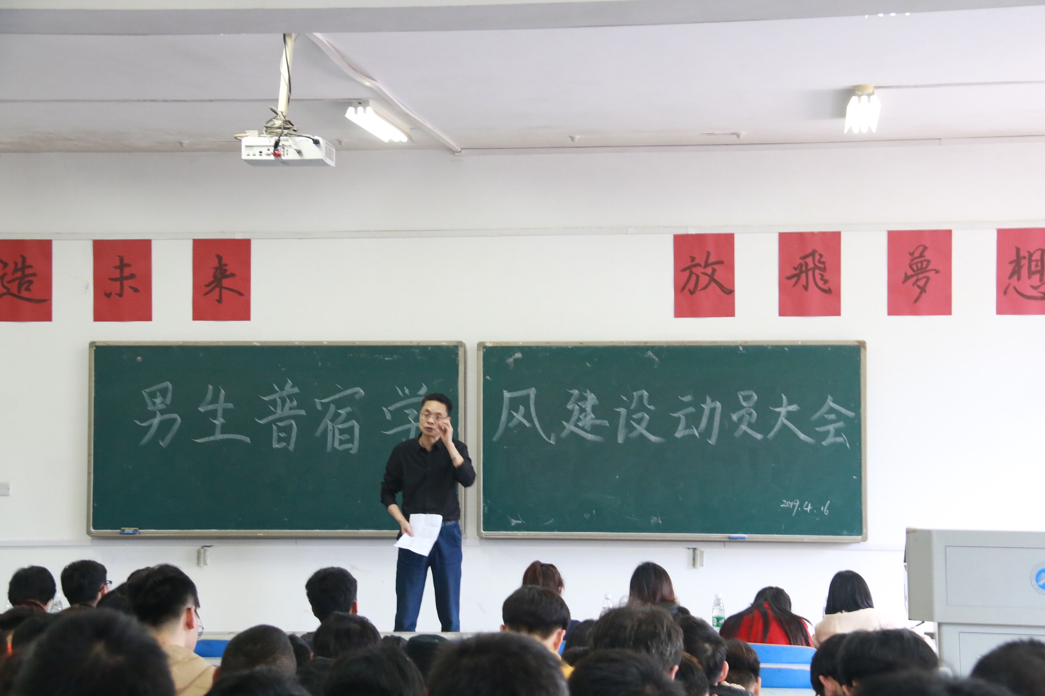 宿舍是大学生学习和生活的重要阵地之一,大学生宿舍生活的文明与否直接关系到学生学习和生活质量的高低,为响应宿舍文明建设月活动,激发广大学生创建文明宿舍的热情,提高自我约束、自我监督和自我管理的意识和能力,2019年4月16日14:00,湖南科技大学男生普宿学风建设动员大会于第一教学楼204教室顺利开展。3044am永利集团官网党委副书记傅早霞和3044am永利集团官网全体辅导员莅临大会。
