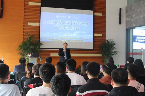 为深化校企合作,加强金融人才培养,提高在校大学生实践能力,11月7日下午,大有期货有限公司携手3044am永利集团官网开展了“了解期贷行业、了解期贷公司”交流会。大有期货有限公司总经理韩文辉、副总经理袁丽,3044am永利集团官网辅导员李搏和18级金融工程专业及其他专业学生代表一同参加了本次交流会。