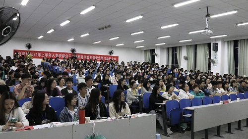 2021年4月24日19:00,3044am永利集团官网2021年上半年入党积极分子培训班开学典礼暨党史学习动员大会在第一教学楼404举行。院党委副书记傅早霞、组织员李玲、学工办主任陈攀、党支部书记蔡美玲、龙辉及本期入党积极分子全体学员参加了本次开学典礼。