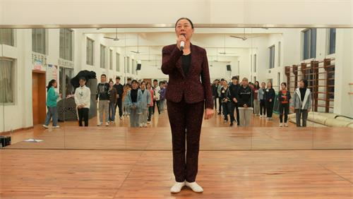 课程开始前,郭老师首先表示学会放松是此次形体辅导课的重点,希望同学们都能够找到让自己自信、放松的感觉。随后,郭老师以一首活泼欢乐的歌曲作为背景音乐,让干培成员伴随音乐,模仿老师的动作进行放松,现场气氛立刻被点燃。正如开幕式的视频中所说,此次形体辅导活动会让干部们在忙碌的学习与生活中得到放松。紧接着,干培成员们分别学习了站姿、走姿、自我介绍以及找节奏感等基本礼仪知识,成员们都跟随老师认真学习,努力完成好每一项任务。课程结束后,郭老师强调只有坚持才能有所提高,希望成员们能坚持练习,并在接下来的生活中更加关注自己的体态和气质。
