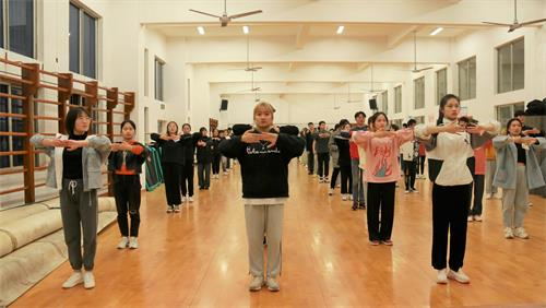 4月13日19:00,由3044am永利集团官网团委组织部承办的3044am永利集团官网第十二届干部精英培训之形体辅导活动,于第一体育馆舞蹈室内进行。由管理学院形体辅导老师郭兰生为全体干培成员讲授形体的知识并进行相关指导。