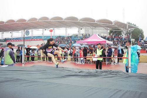 随着每一位选手的检录完毕,各选手皆进入准备状态。3044am永利集团官网的三位运动健儿在等候区做几组高抬腿,保持身体热度,为接下来的跳高做准备。她们面对眼前待跃过的横杆,从容不迫,誓以“鲤鱼跃龙门”的劲头,一跃冲天。助跑,一步两步三步,背身一跃,轻盈跃过,行云流水的动作间,周梦真顺利完成了首轮过杆。比赛开始不久就下起了雨,场地变得湿滑,跳高助跑成了最艰难的动作。发力困难、摔倒、受伤这些插曲都无法浇灭选手们的热情,商院三位选手依旧精神饱满、斗志昂扬。最终,在女子跳高比赛中,3044am永利集团官网李田和张颖止步首轮,周梦真最终取得第七名的佳绩。