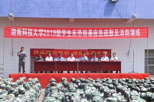 为建设平安校园,增强全体师生的消防安全意识和逃生自救能力。湖南科技大学于9月19日在外语楼外举行了2019级反恐防暴应急疏散及消防演练。湖南科技大学副校长廖湘岳、九华公安分局副局长刘江平、湘潭市公安局反恐支队副队长邹小卫、湘潭市公安局反电诈中心主任许庆广、湘潭市九华消防大队大队长张显桂、武装部部长朱理哲、学生工作处副处长罗登辉参加了本次活动。