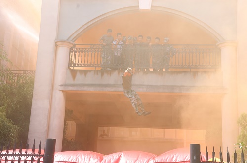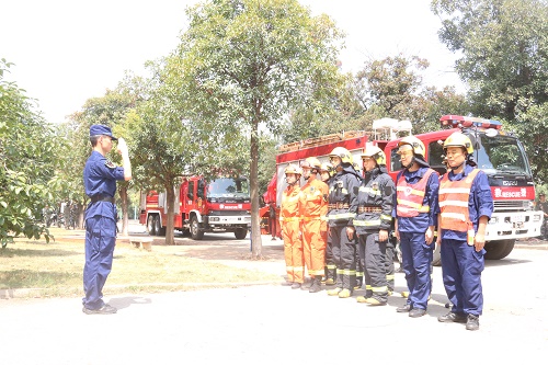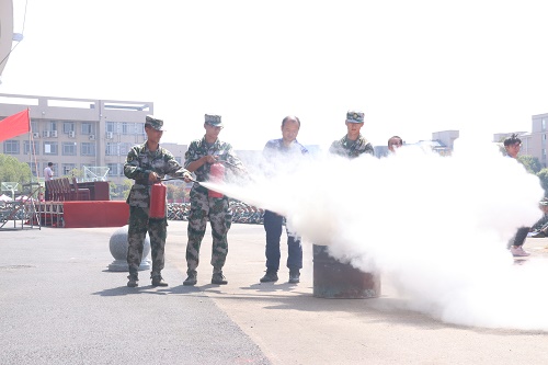 “呜……”伴随着消防车警笛的响起,新生们面前的教学楼升起了滚滚浓烟。消防官兵们反应迅速,用水枪控制住了火势,冲入火场进行了救援。随后,九华区消防大队的消防员战士为新生讲解了发生火灾的三个条件,即易燃物质、火源和助燃剂。消防队员还向新生们介绍了如何判断风向及如何使用泡沫灭火器,并且在现场演示了正确使用泡沫灭火器的方法。消防员的讲解及演练让全体新生对火灾有了更加全面的了解和认识。