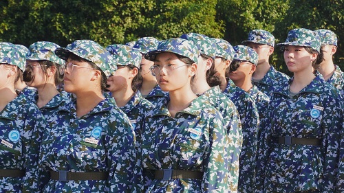 初秋的阳光依旧毒辣,但似火的骄阳也挡不住新生们昂扬的斗志。“拇指尖贴于食指第二关节,中指贴于裤缝……”教官从最基础的军姿动作要领开始亲自示范,他们扬着一张张小脸仔细聆听,精神饱满,积极投入。