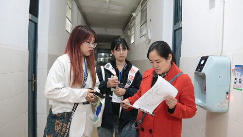 老师们与相应负责的宿管部干事简单对接工作后,走访了本年级学生所入住的宿舍,从卫生习惯、归寝时间、热水取用等方面与同学们进行了交谈,并特别强调在今后的宿舍生活中要注意电器的使用,提高安全防范意识。