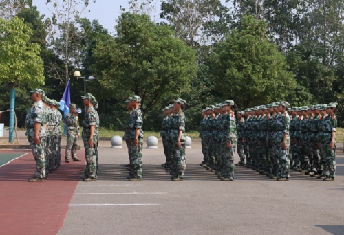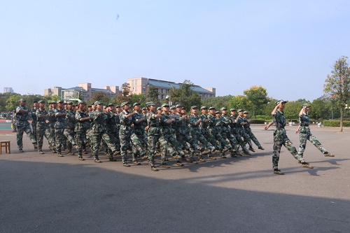随着激越昂扬、催人奋进的音乐响起,方阵队的训练由此拉开了帷幕。旗手高举着旗帜,队员呐喊着口号,铿锵有力、整齐划一的步伐声顿时响彻了整个训练场地。场地上旗帜飞扬,口号声震耳欲聋,每一个方阵队都无不展示着军人的气魄和当代大学生应有的蓬勃朝气,高涨的气氛,鼓舞着在场的每一个人。