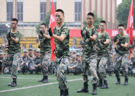 夏威代表大学生军训团全体教官特表决心,希望全体参训同学克服困难,全身心投入军训。2016级新生代表彭科程代表全体参训学生做出保证:“我们会在军训过程中坚持到底,绝不放弃!”