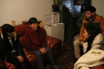 崔正义老人从老伴去世后已独居20多年,只有一只名为“点妹子”的小狗陪伴了她七年。一进崔奶奶的屋子,志愿者就开始忙碌起来,“点妹子”一直跟在他们兴奋地摇着尾巴。他们主动帮老人擦桌子、擦风扇,有的则陪老人聊起了天。在聊天过程中,她和大家诉说起了自己的回忆,房间里时不时传出志愿者和老人的笑声,当老人提起自己生活上的困难时,大家及时安慰老人:“放心,我们会一直陪着您,有什么困难尽管说,我们会帮助您的!”活动的负责人李玉玲笑着说。坐着的老人笑得像个小孩,不停说着“谢谢”。