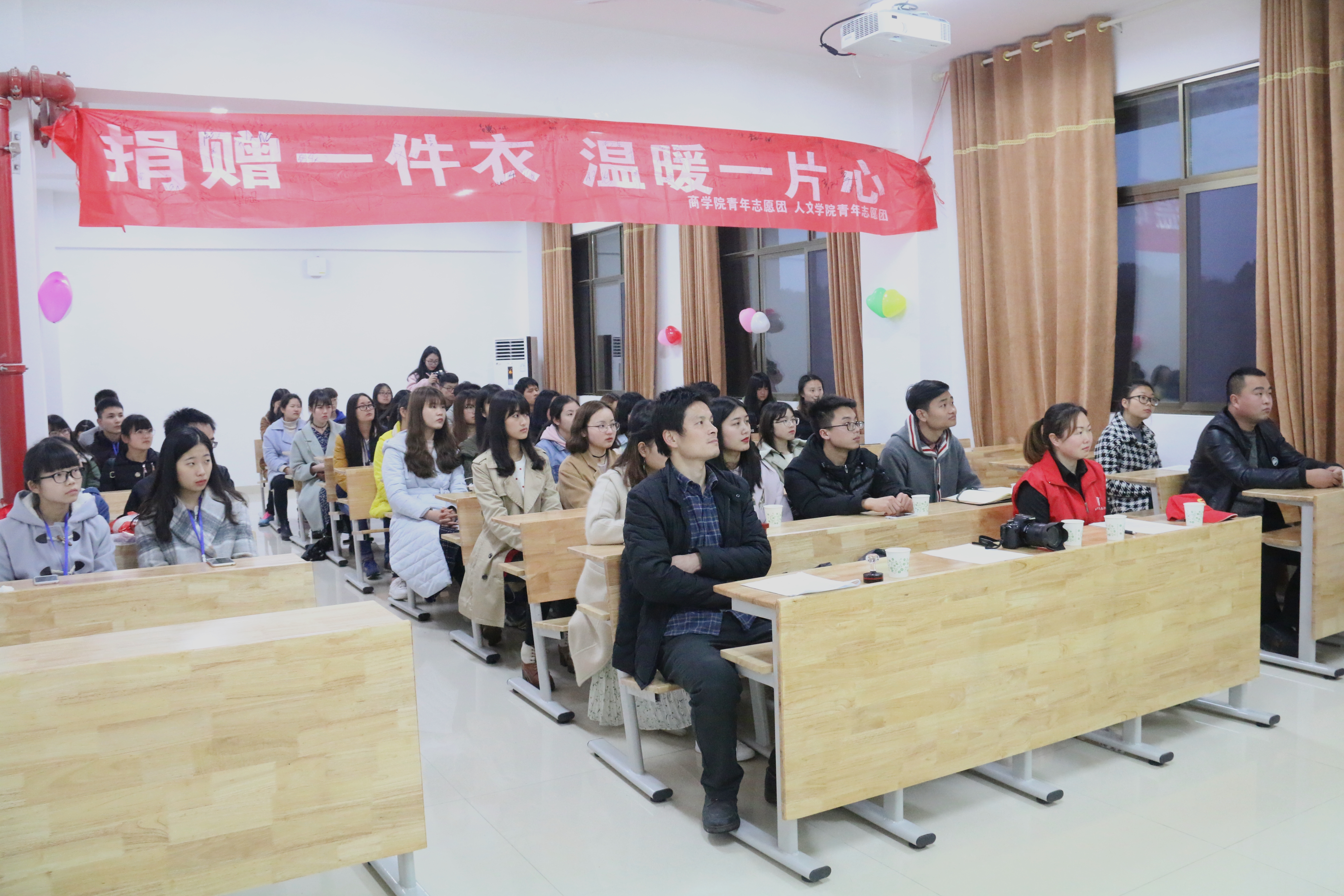 3月24日18:30,由3044am永利集团官网、人文学院青年志愿团与湘潭市莲城志愿者协会联合筹办的“捐赠一件衣,温暖一片心”衣物捐赠落成仪式在文科楼B418举行。参加此次活动仪式的有3044am永利集团官网辅导员老师陈攀、莲城志愿者协会会长杨波、人文学院团委学生会副主席姬铭晟、人文团委第一副书记陈莲瑶、3044am永利集团官网青年志愿团团长胡宗翔以及人文学院青年志愿团团长周翠霞等。