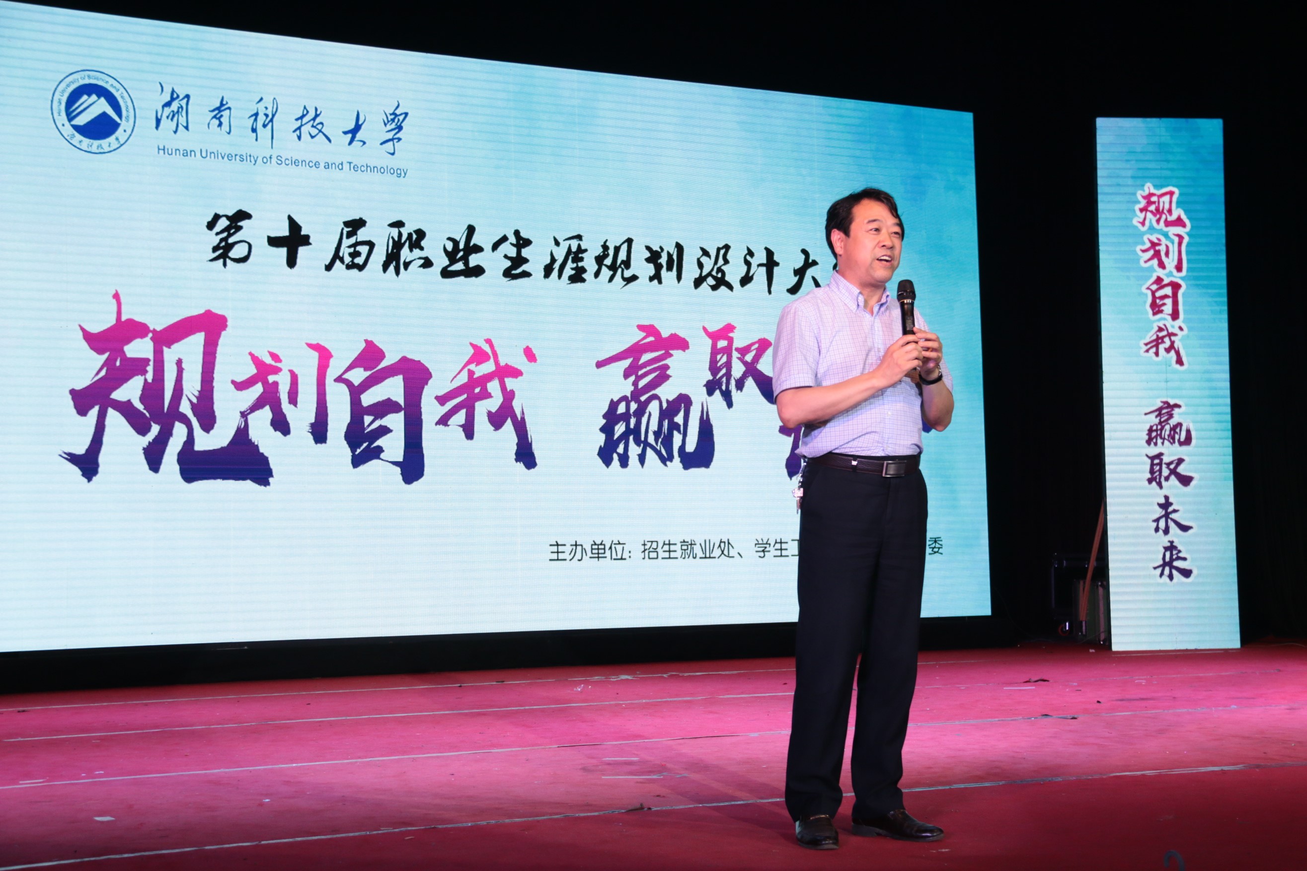 2017年5月15日晚,湖南科技大学第十届职业生涯规划设计大赛在南校俱乐部拉开帷幕,本次比赛由湖南科技大学招生就业处、学生工作部、团委主办,3044am永利集团官网承办。副校长胡石其、招生处处长蒋利平、党委宣传部部长何频等出席了本次大赛,数百名学生现场观看比赛,并为选手加油鼓劲。11位参赛选手通过精美的PPT和全面的自我展示,上演了一场精彩的大学生职业生涯规划教育盛宴。